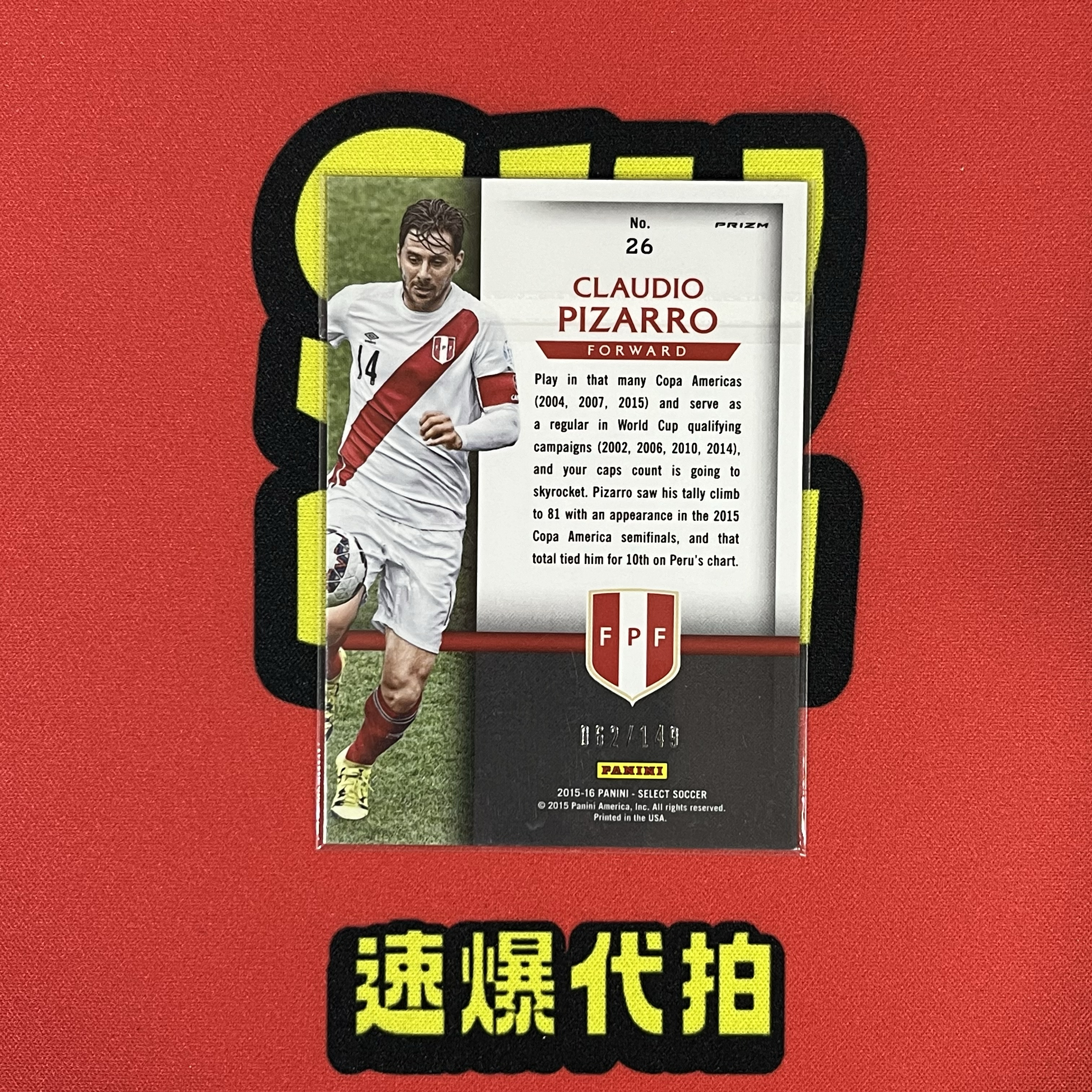 2015-16 Panini Select Claudio Pizarro 秘鲁 国家队 皮萨罗 SE 062/149编 特卡 元年 卡品如图 rios 【速爆代拍】