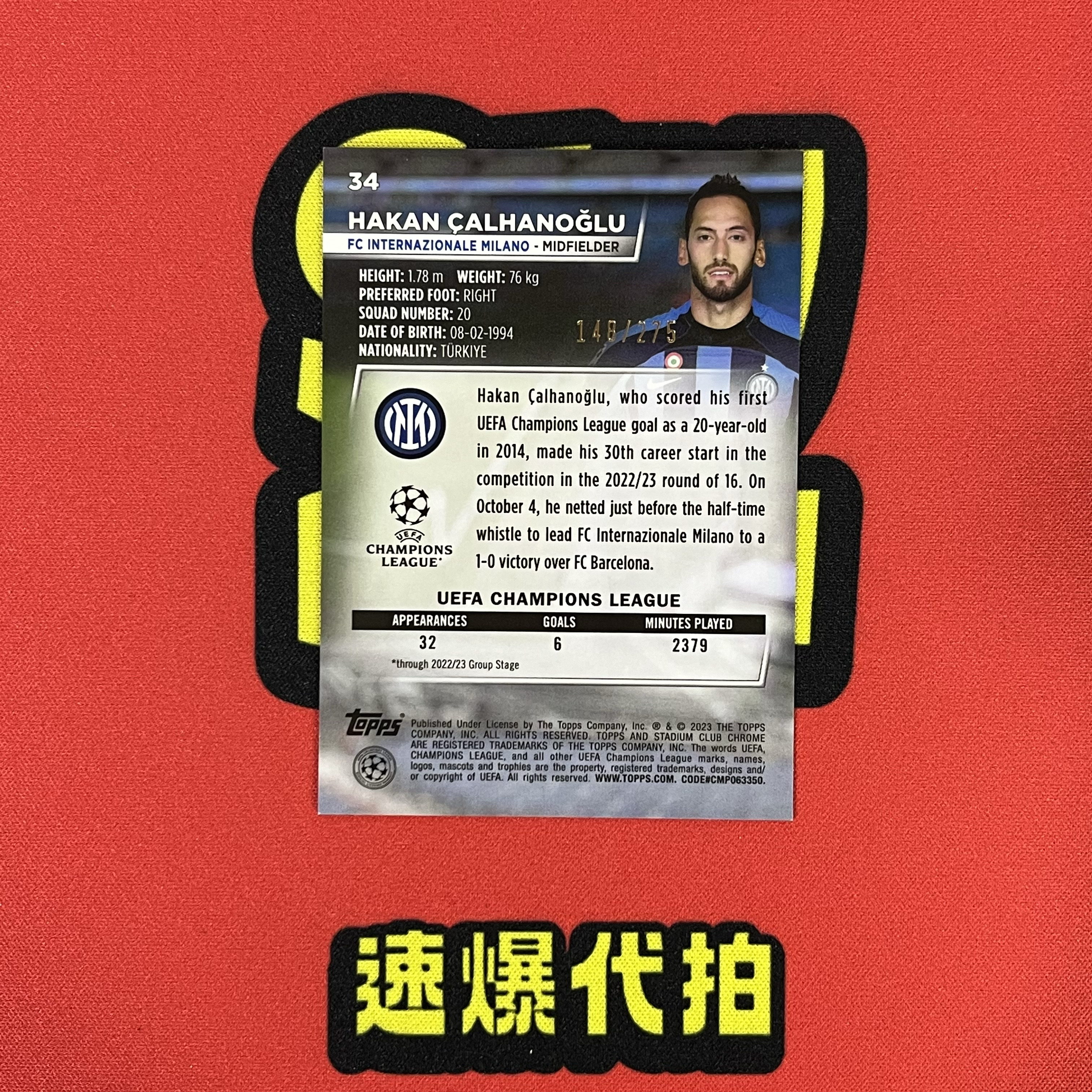 2022-23 Topps Chrome Hakan Calhanoglu 意甲 国际米兰 恰尔汗奥卢 竞技场 148/275编 绿波纹折 卡品如图 rios 【速爆代拍】