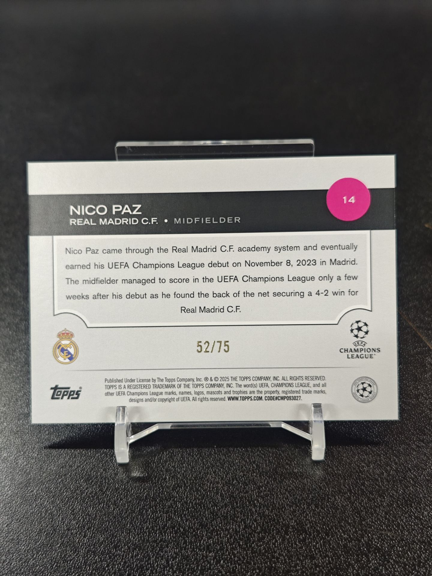 【浩行拍卖 截标预付82%】2025 topps Nico paz 欧冠 皇马 尼科帕斯 52/75编 蓝星空折 折射 future stars 特卡 专收必备 「木几」1127S01單