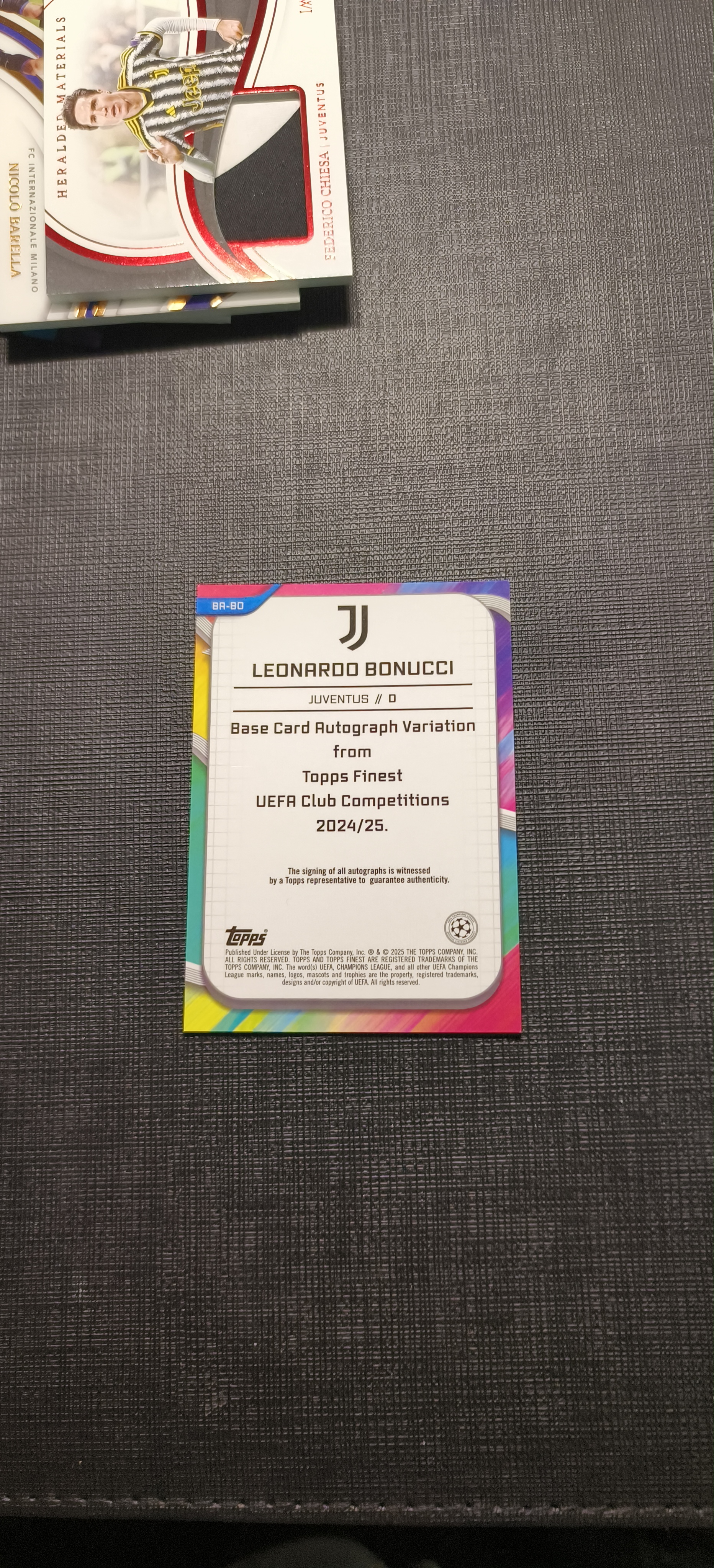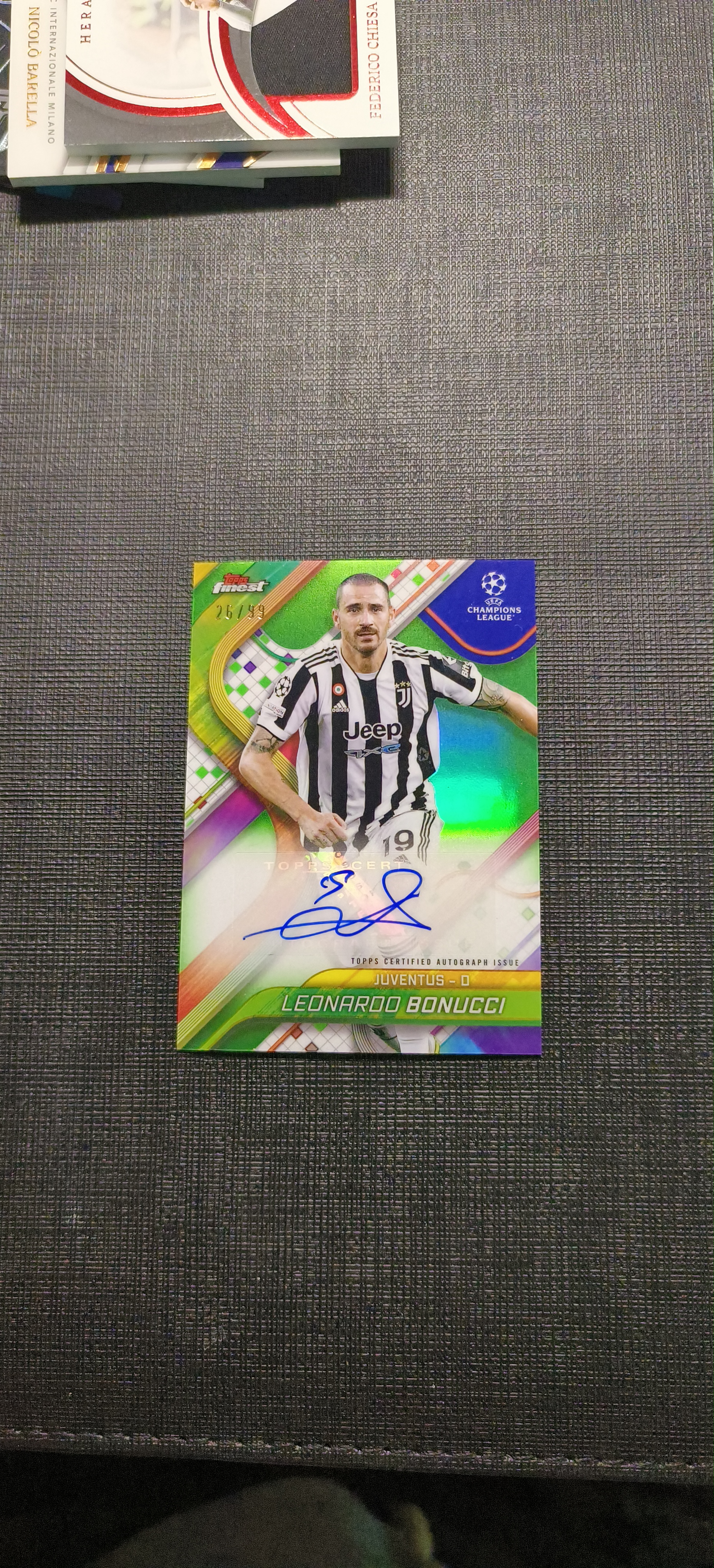 2025 Topps Finest Leonardo Bonucci 博努奇 欧冠tf 完美签字 99编 绿折 尤文图斯 意大利🇮🇹传奇后卫 超级中卫 基耶利尼 布冯