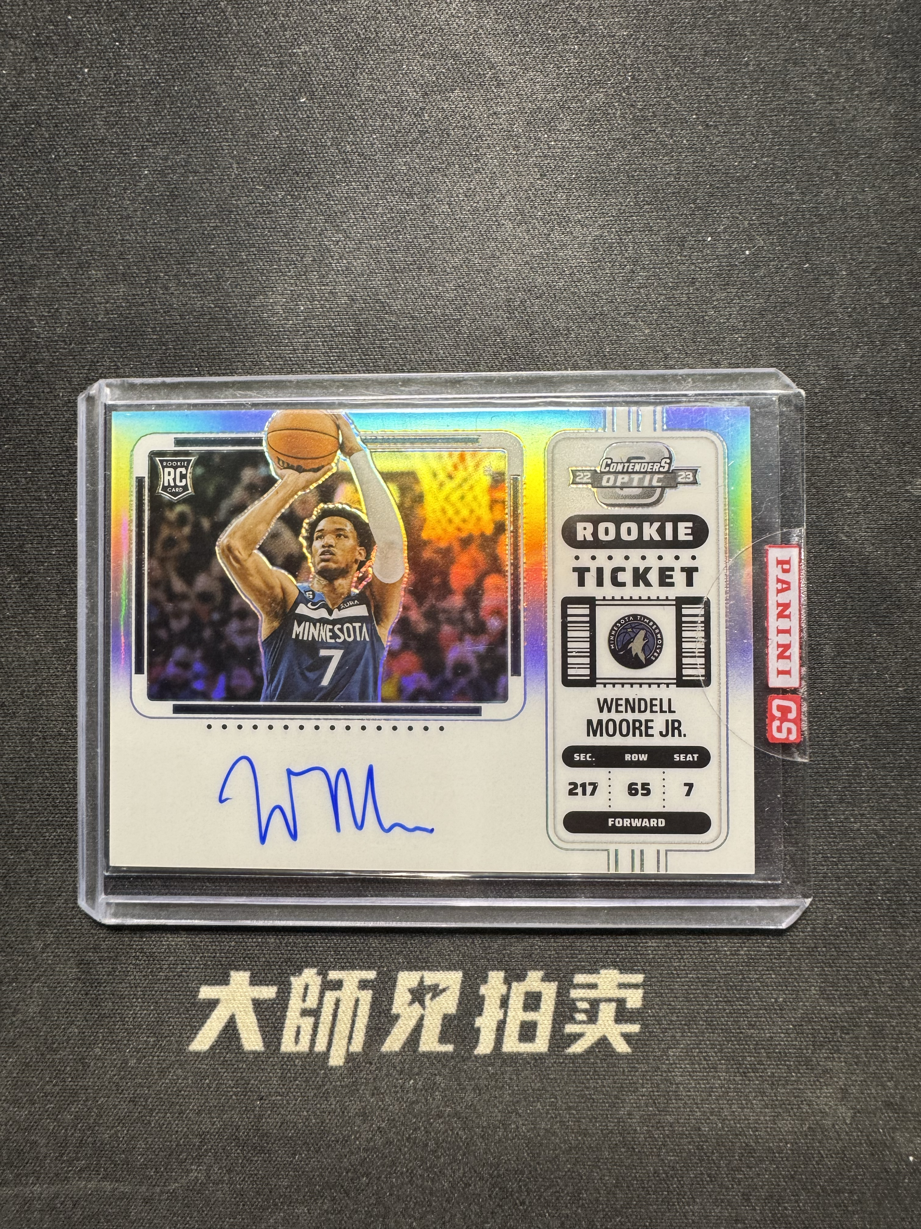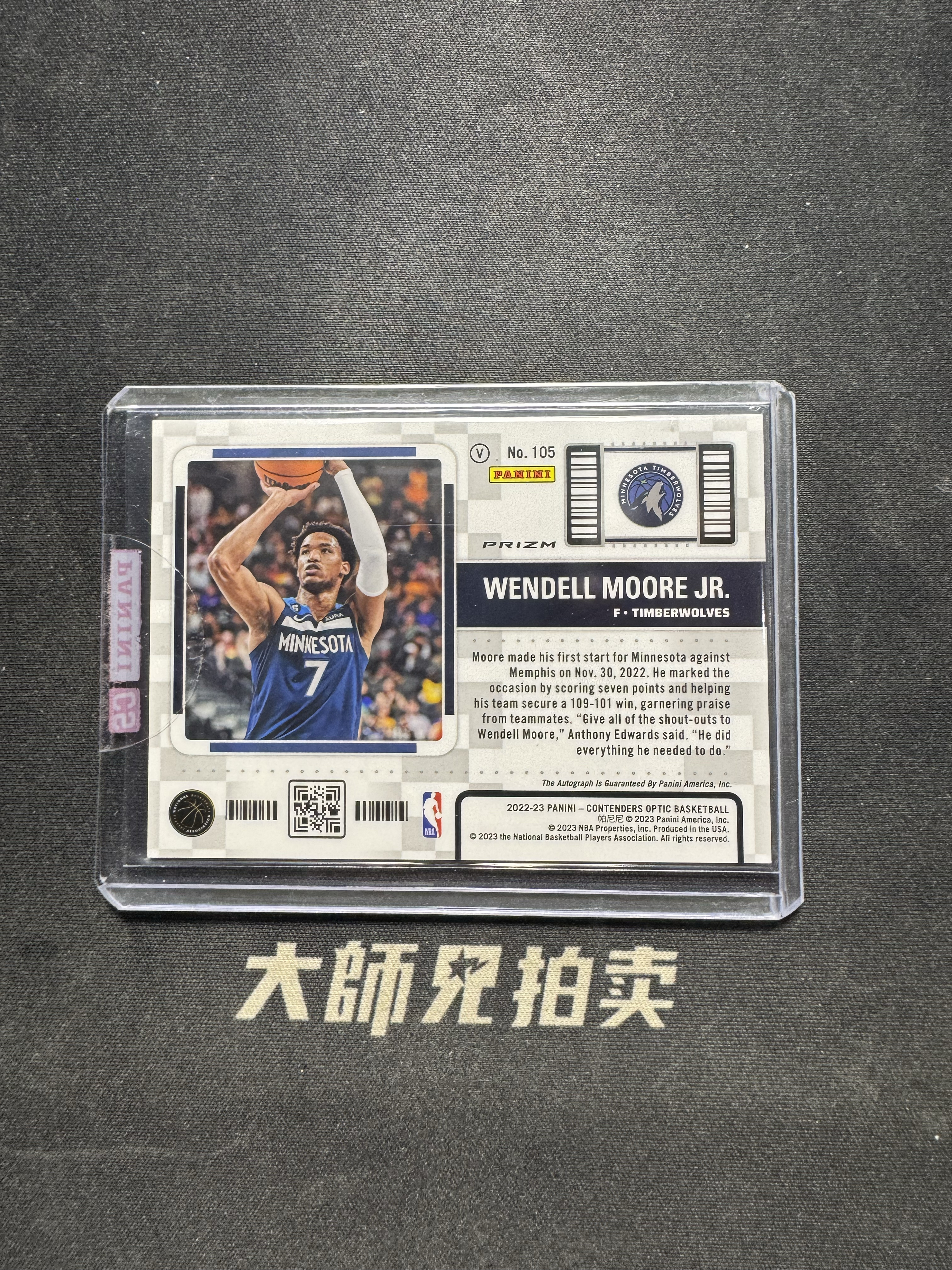 【大师兄拍卖】2022-23 Panini contenders optic WENDELL MOORE JR RC 森林狼 小温德尔 摩尔 新秀 op球票 银折 签字 卡签 原封夹 -Norman-