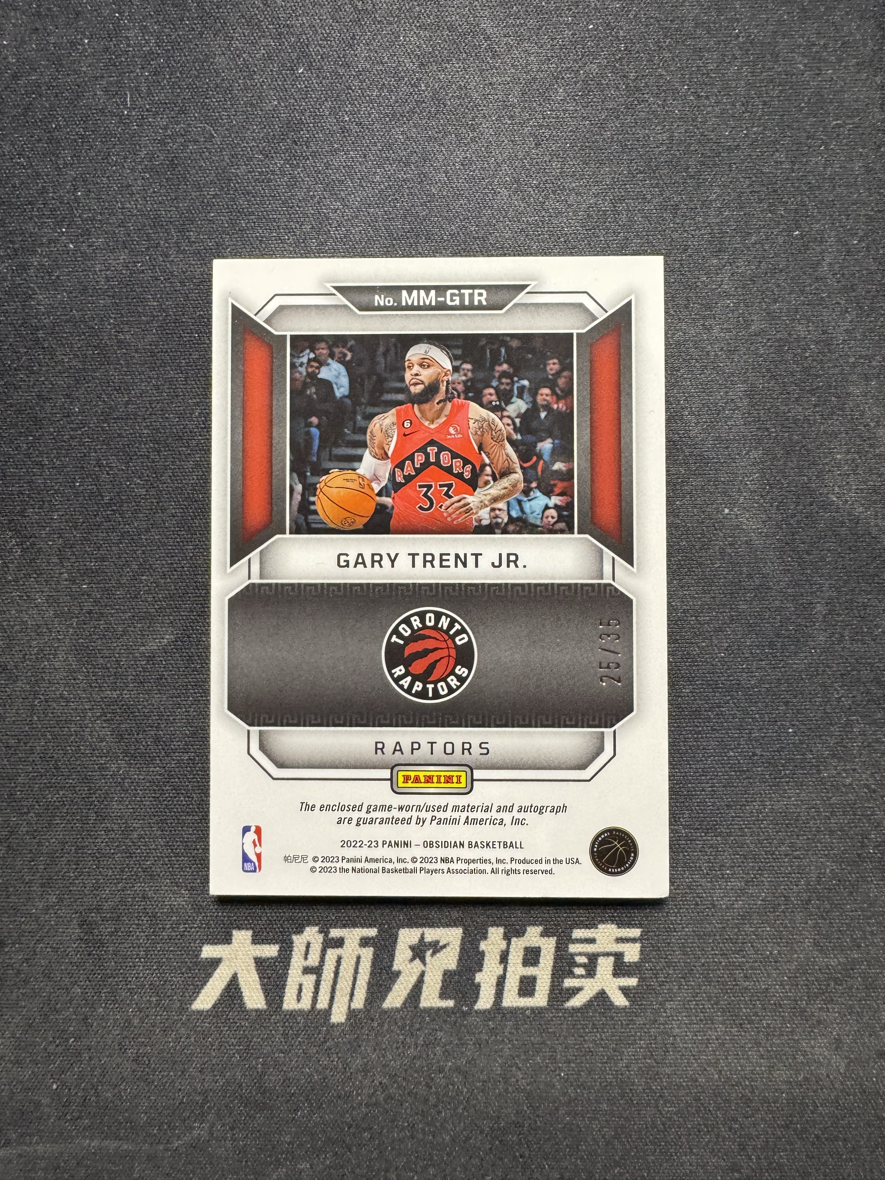 【大师兄拍卖】2022-23 Panini obsidian GARY TRENT JR 猛龙 小加里 特伦特 黑曜石 /35编 pa 签字 亲穿球衣物料 gu 微瑕如图 -Norman-