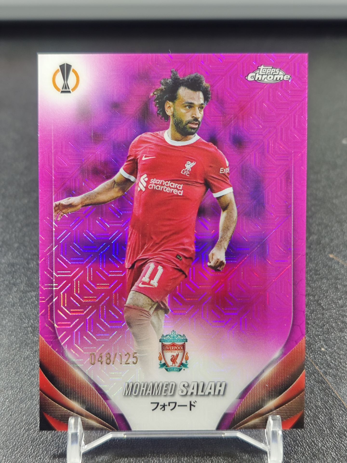 【浩行拍卖 截标预付82%】2024 topps Chrome mohamed salah 欧战 利物浦 埃及法老 萨拉赫 粉mojo折 折射 48/125编 瑕疵看图 专收必备「木几」1127S02單