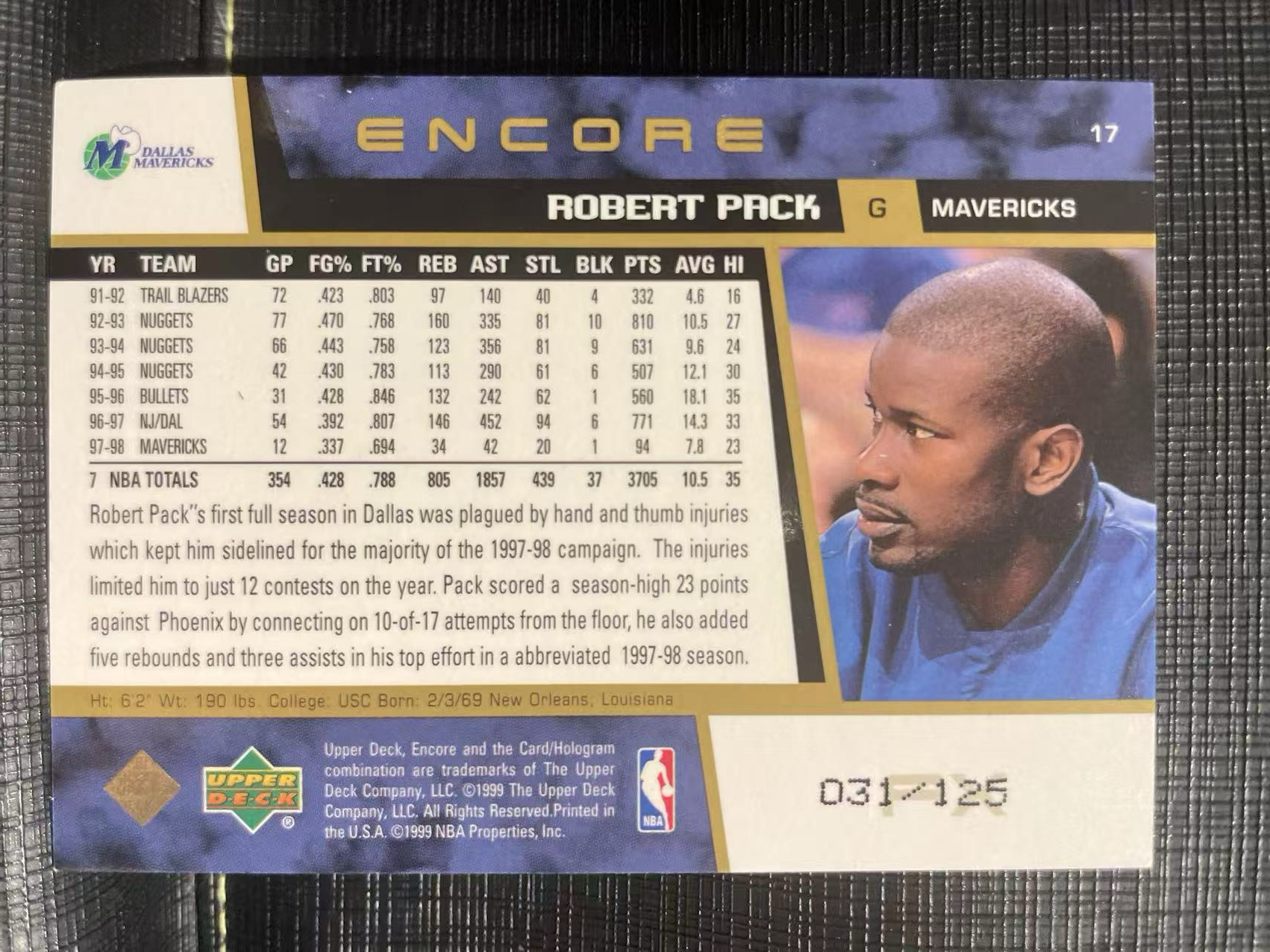 1999 Upper Deck Americana Robert Pack 小牛 罗波特 派克 125编!金折!金标!超级帅!限量卡!限量带编!值得珍藏 卡品如图💗一卡在手 以文会友💗