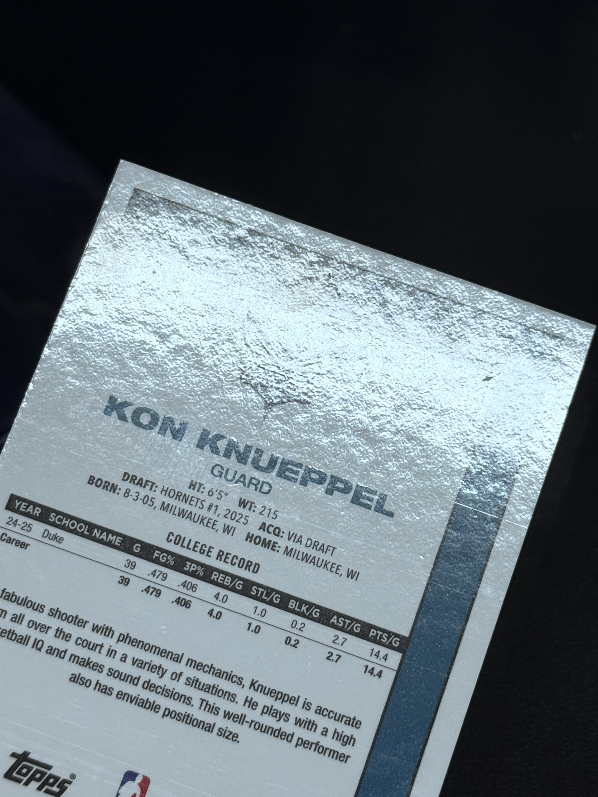 【浩行拍卖 截标预付82%】2025 topps chrome kon knueppel 黄蜂 康 克尼佩尔 RC 新秀 银mojo折 折射 45周年 复古特卡 专收必备 瑕疵看图「初途」1127B01裊
