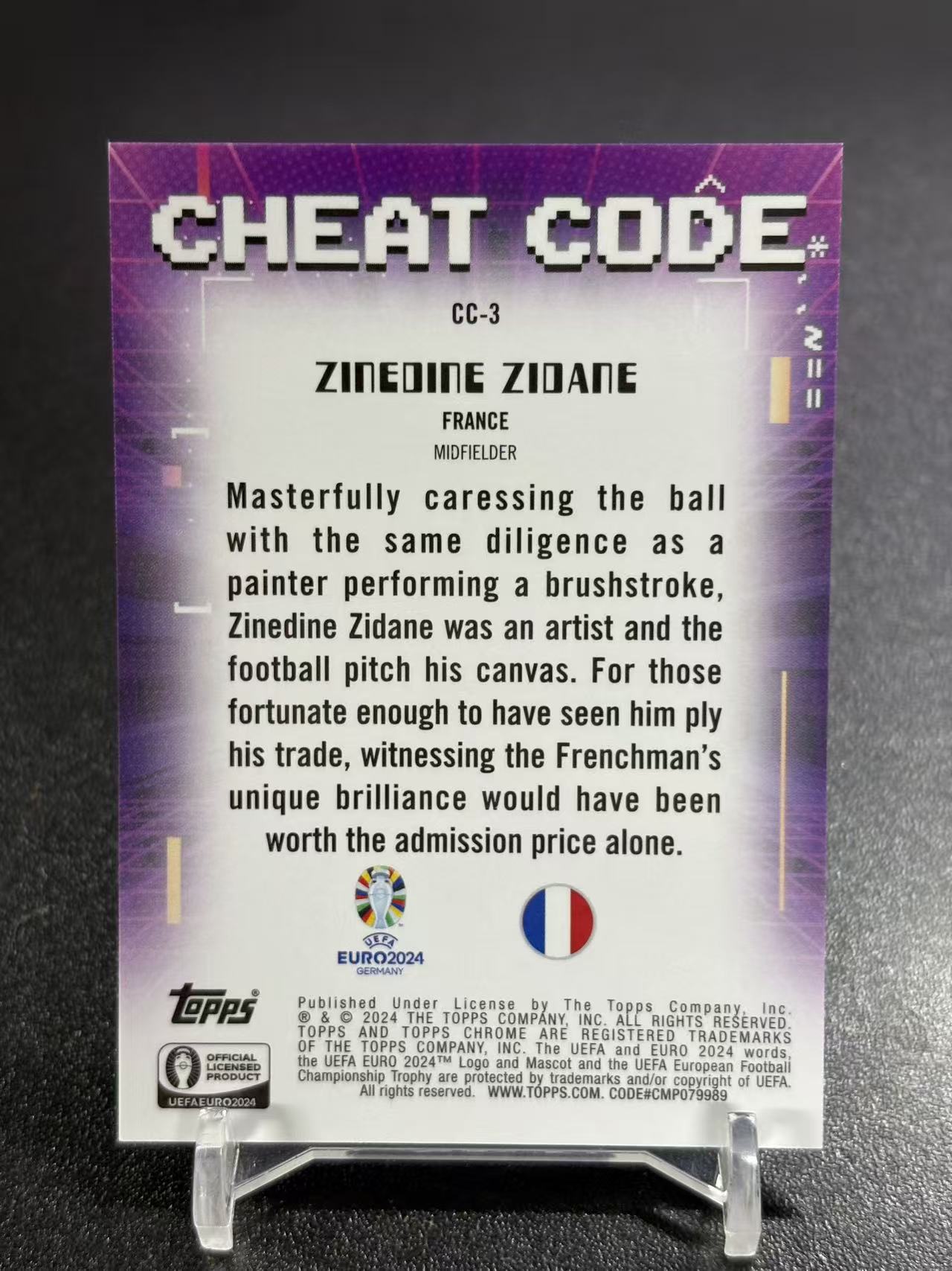 【浩行拍卖 截标预付82%】2024 topps chrome zinedine zidane 欧洲杯 法国 齐达内 紫折 折射 cheat code 特卡 30/150编 专收必备 瑕疵看图「木几」1127S06鍾
