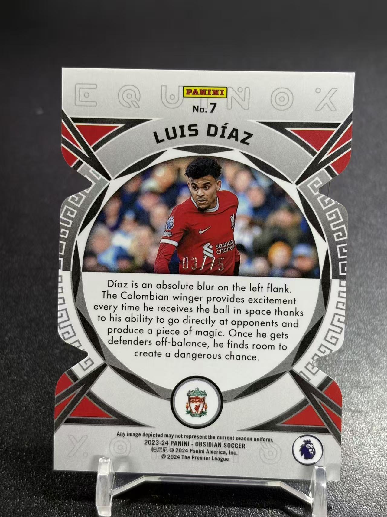 【浩行拍卖 截标预付82%】2023-24 panini obsidian luis diaz 黑曜石 英超 利物浦 路易斯 迪亚兹 异形 脉冲折 黑白折 equinox 特卡 3/75编 瑕疵看图 专收必备「木几」1127S06鍾
