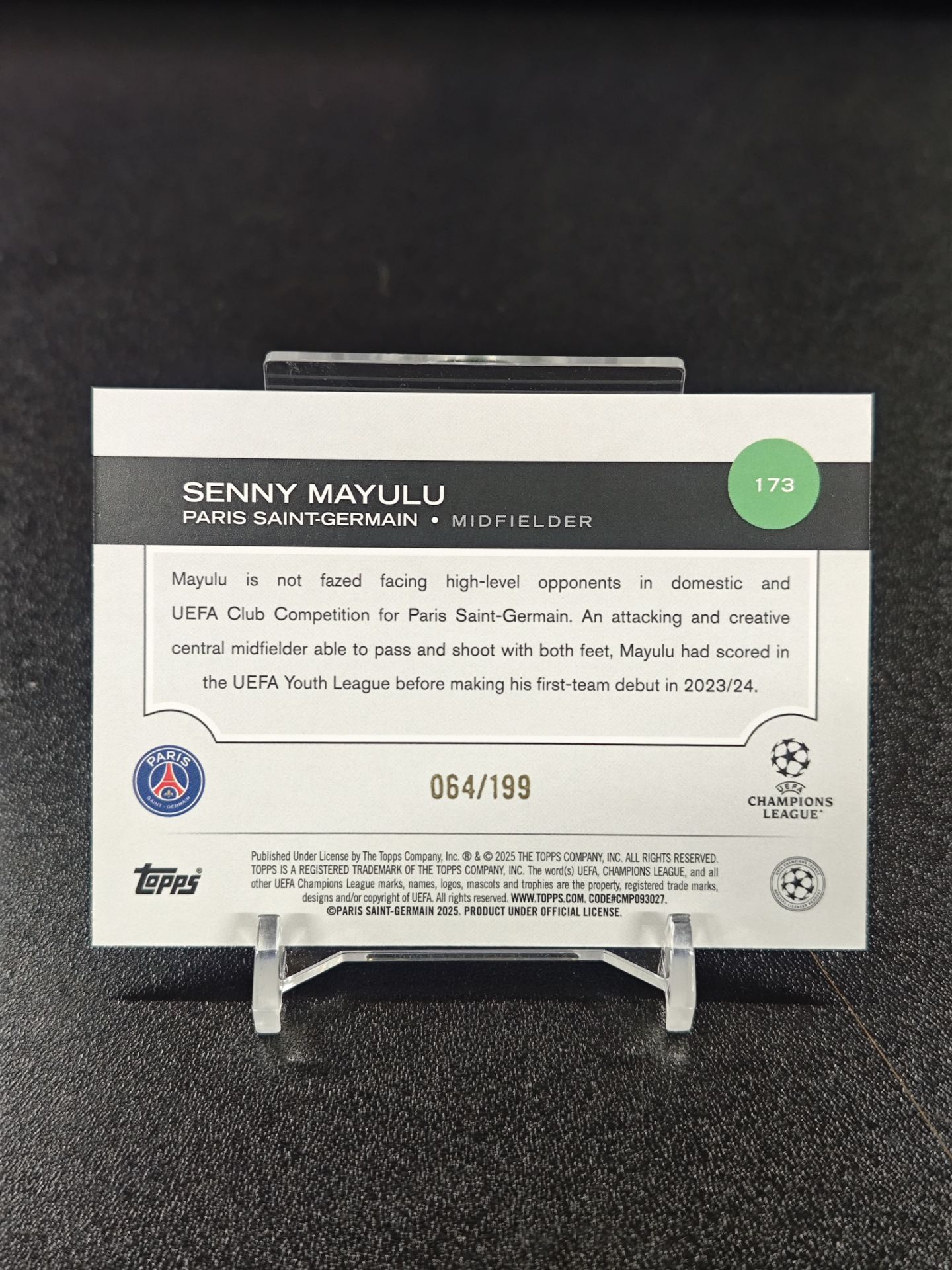 【浩行拍卖 截标预付82%】2025 topps senny mayulu 欧冠 巴黎 塞尼 马尤卢 64/199编 rc 新秀 绿折 折射 瑕疵看图 专收必备「木几」1127S03單