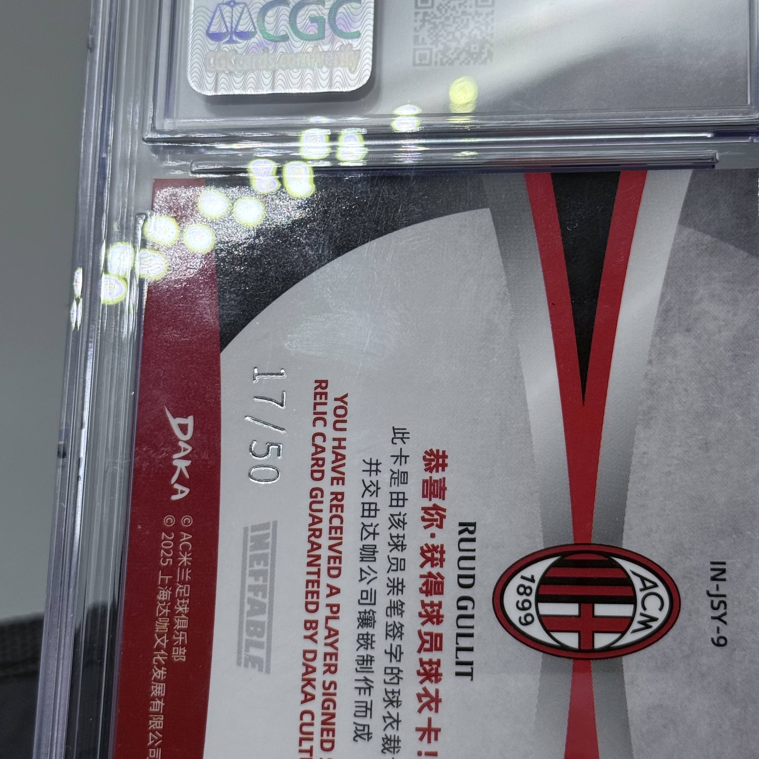 【UD代卖-alan哥】2025 DAKA 达咖 One & Two AC米兰队盒 Ruud Gullit 古利特 小窗球衣物料 17/50编 银平行 CGC评级卡品8.5分 收藏必备 微瑕 卡品如图
