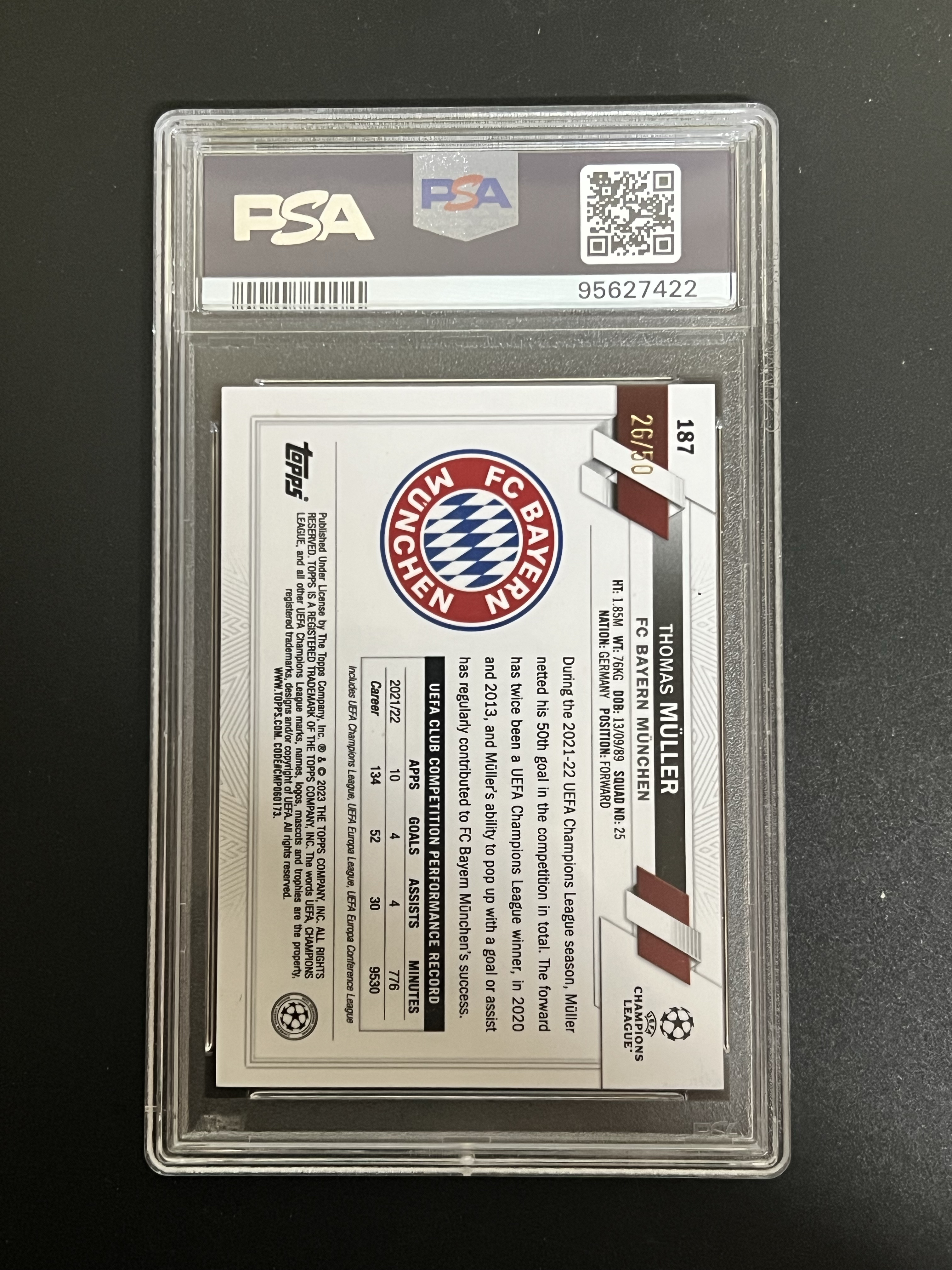 2023 Topps Chrome Thomas Muller 欧冠 拜仁慕尼黑 托马斯 穆勒 26/50编 金折 PSA10分 收藏必备