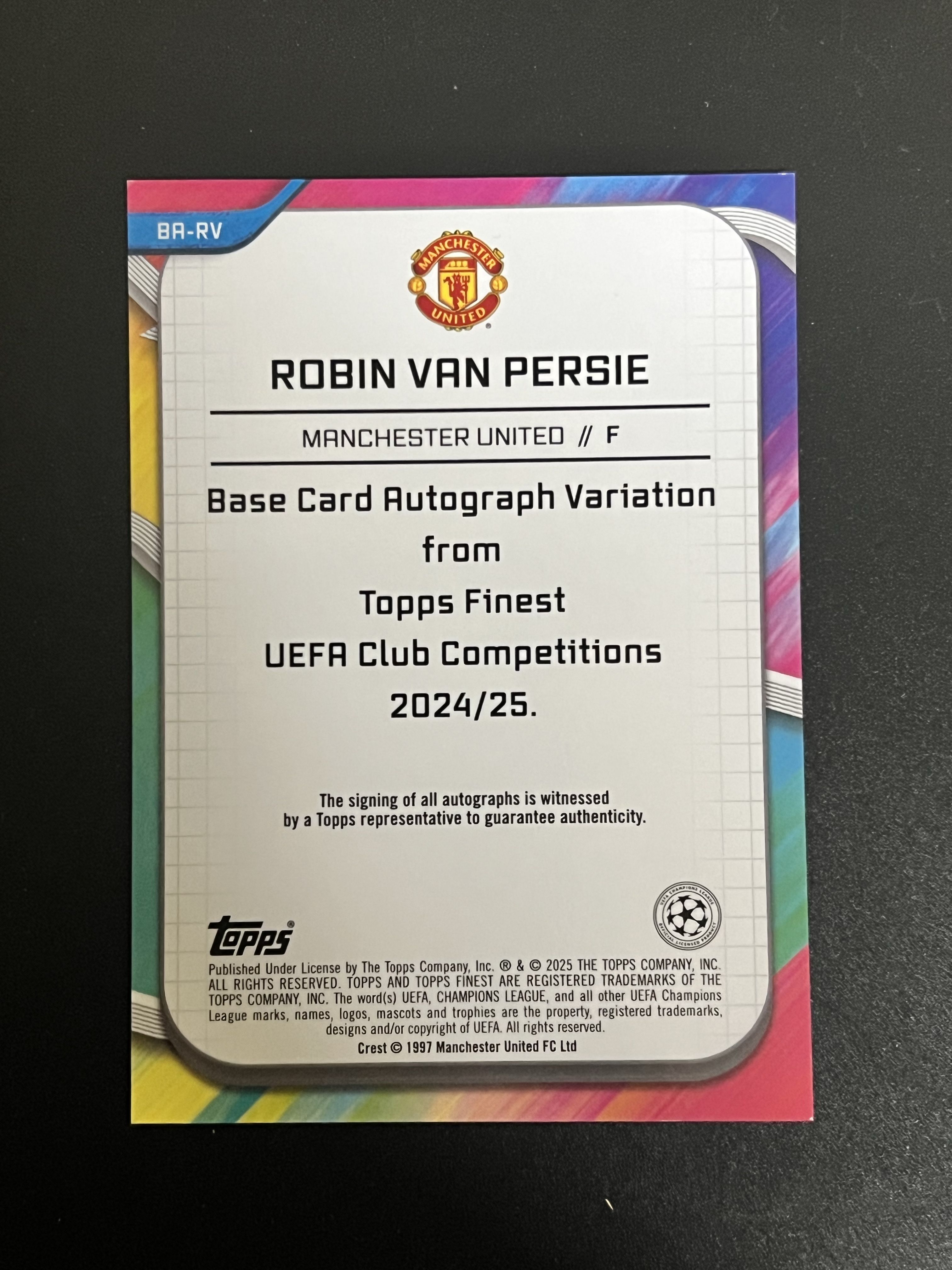 2024-25 Topps Finest 欧冠 欧战 曼联 Robin Van Persie 罗宾 范佩西 范大将军 金折 金熔岩折 50编 签字 收藏必备