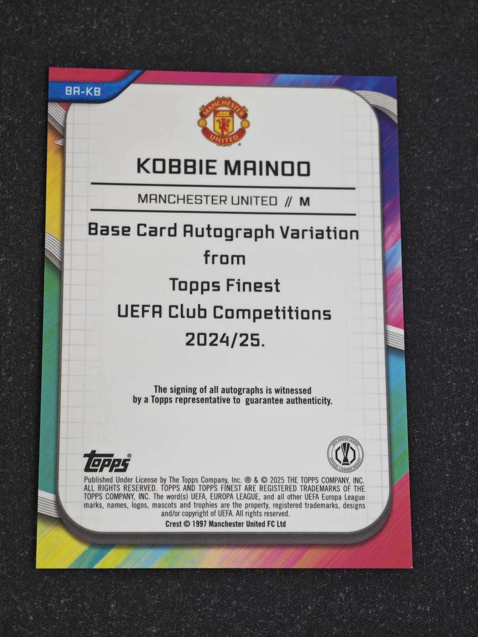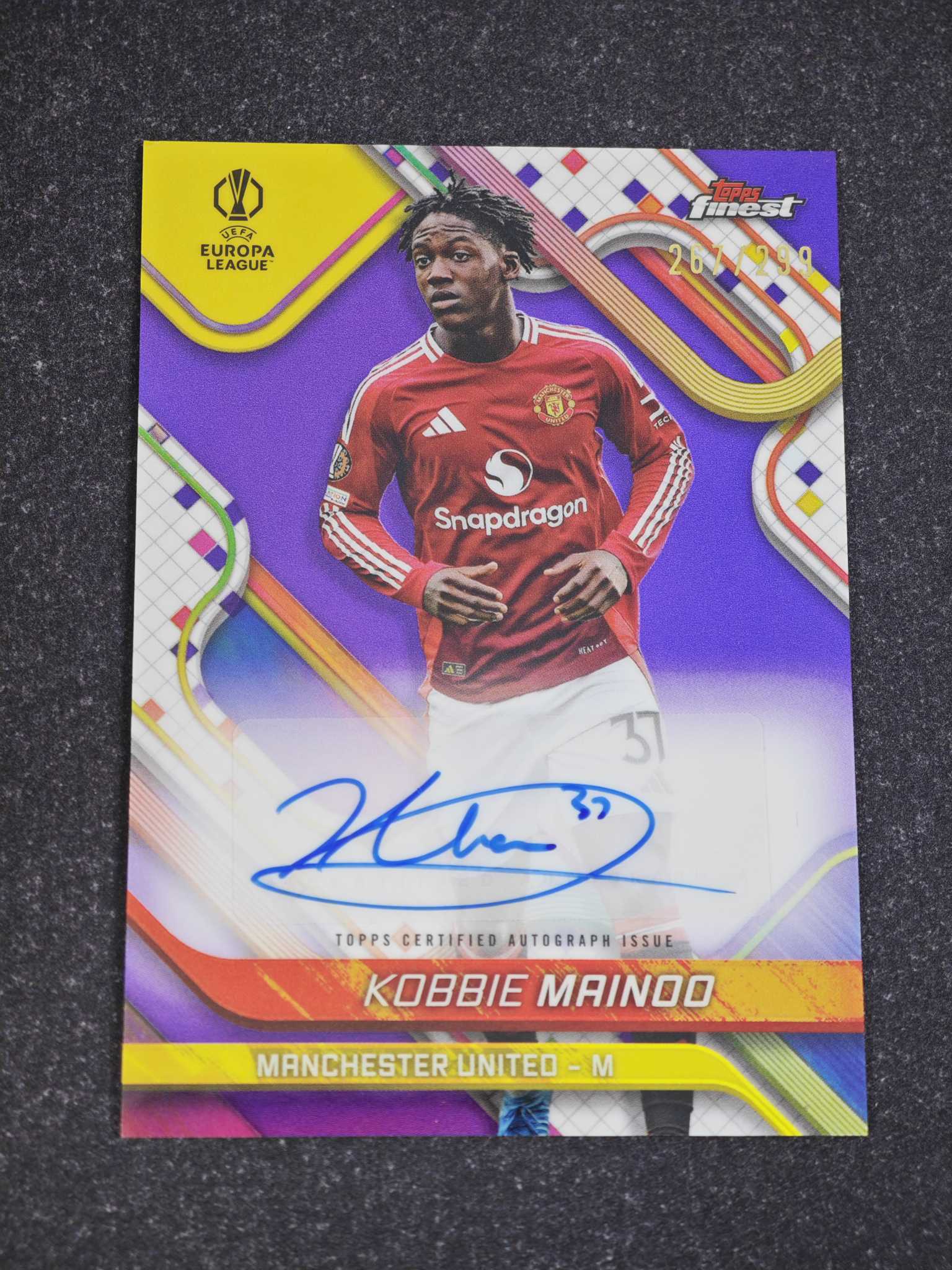 2025 Topps Finest Kobbie Mainoo 【小灰机】finest系列 欧冠 曼彻斯特联 曼联 科比梅努 267/299编 紫折 签字 瑕疵如图 4521