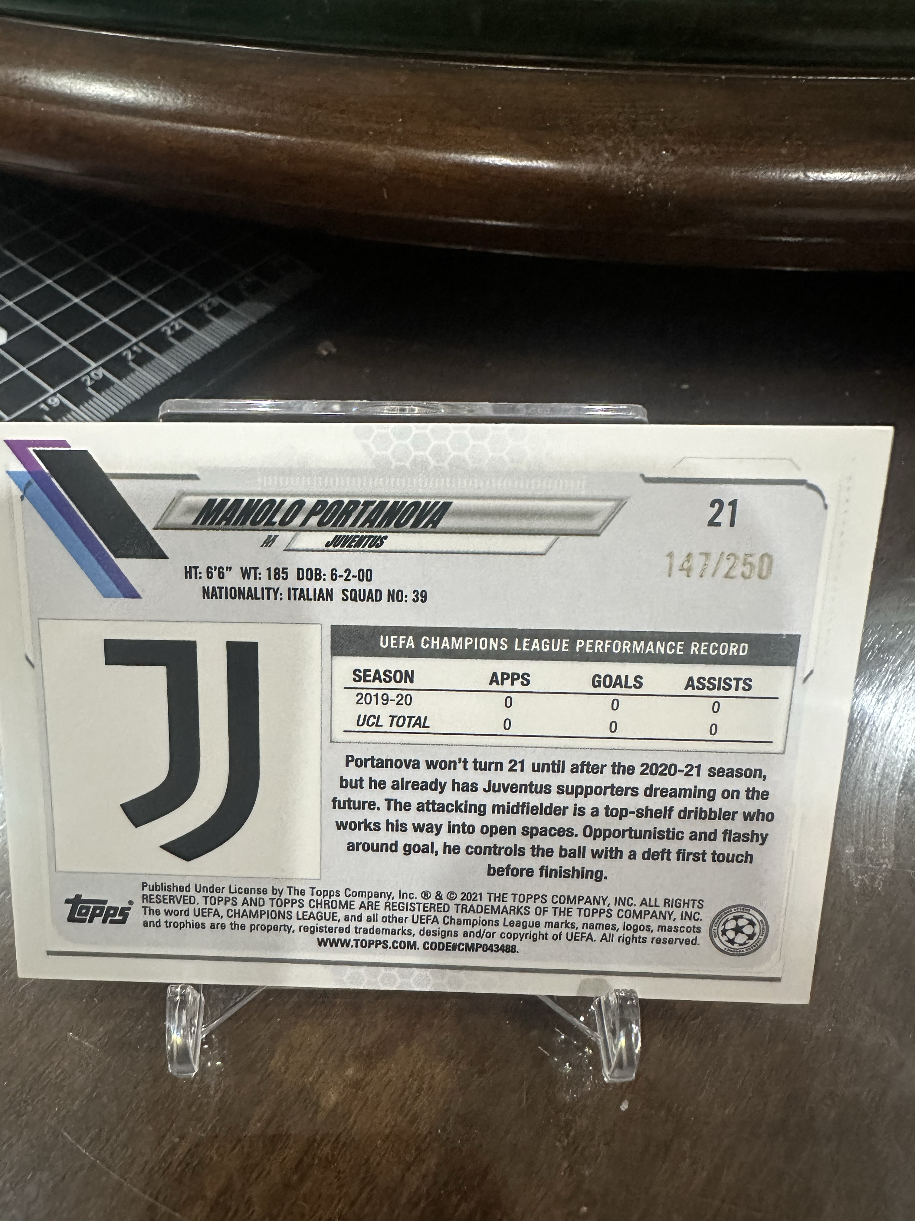 2021 Topps Chrome Manolo Portanova RC 欧冠TC 尤文图斯 波尔塔诺瓦 250编 紫碎钻折 折射 新秀RC 收藏 意大利🇮🇹 极具收藏价值 亚马尔 C罗