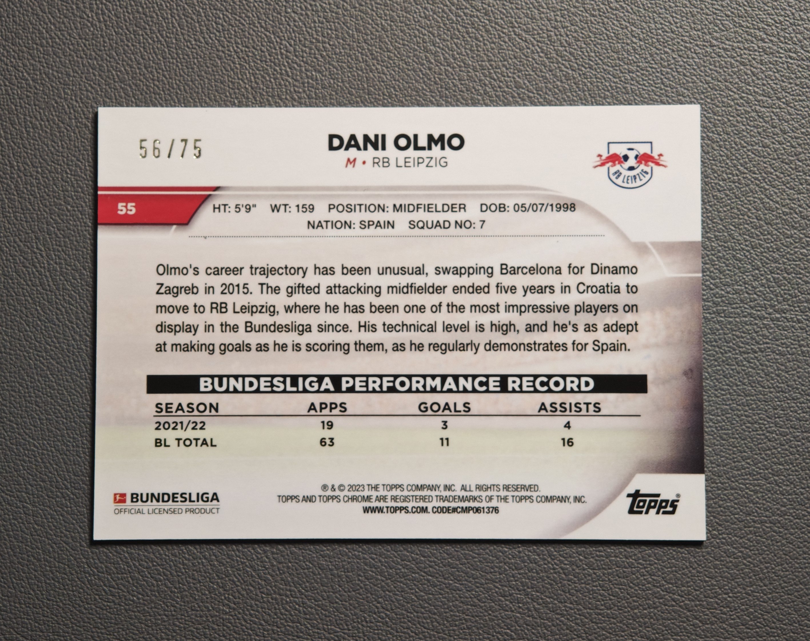 【闪电拍卖】2023 Topps Chrome Dani Olmo 德甲TC 莱比锡红牛 奥尔默 奥尔莫 粉折 56/75编 WX1127