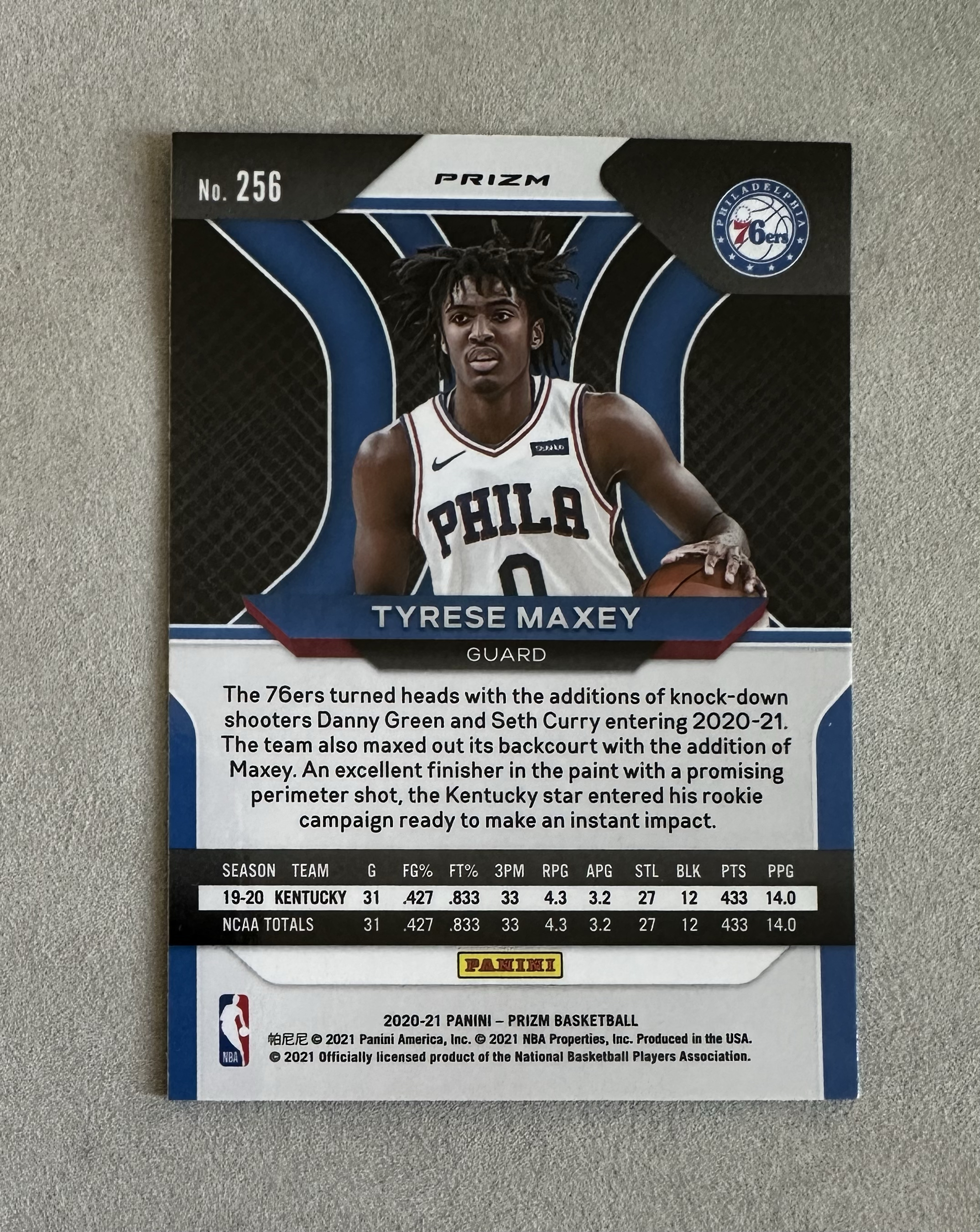 2020-21 Panini Prizm Tyrese Maxey RC 76人队 新秀 马克西 新秀三色折 瑕疵如图 卡量稀少 凑套必备 (w哥01)