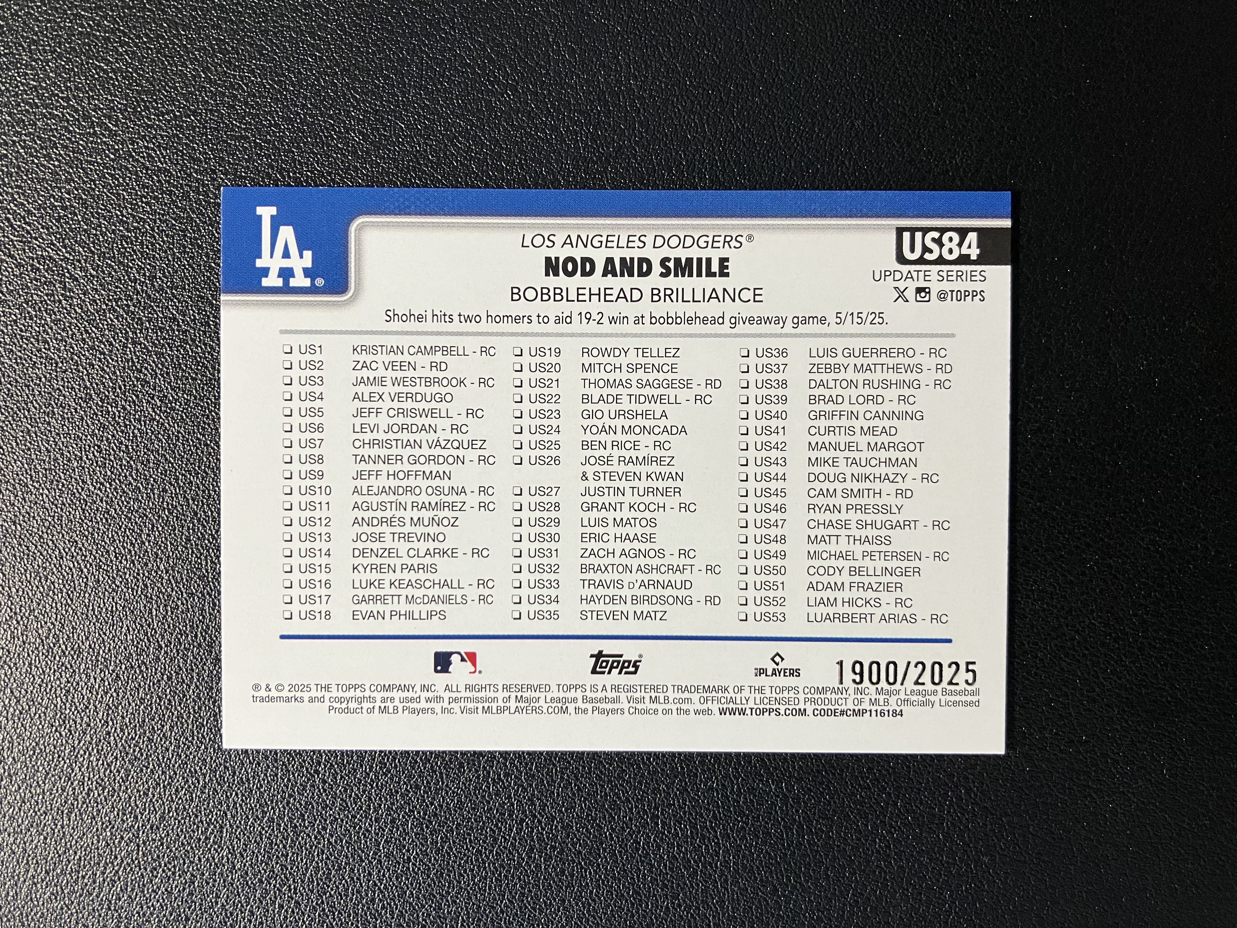 2025 Topps Update Series Shohei Ohtani 大谷翔平 1900/2025编 点头微笑 时刻 洛杉矶道奇 日本 美联MVP 卡品如图 B227