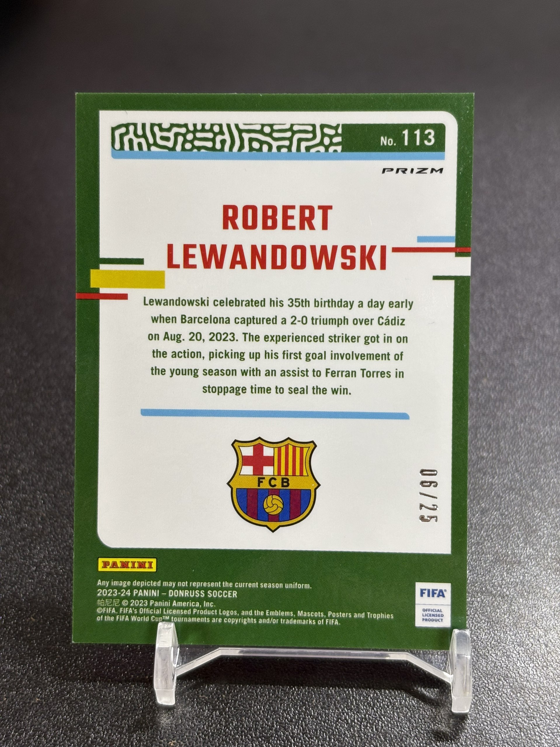 【浩行拍卖 截标预付82%】2023-24 panini Donruss optic Robert Lewandowksi 杜蕾斯 巴塞罗那 巴萨 莱万 莱万多夫斯基 粉碎冰 折射 6/25编 瑕疵看图专收必备「晋EMW」1128S03單鍾