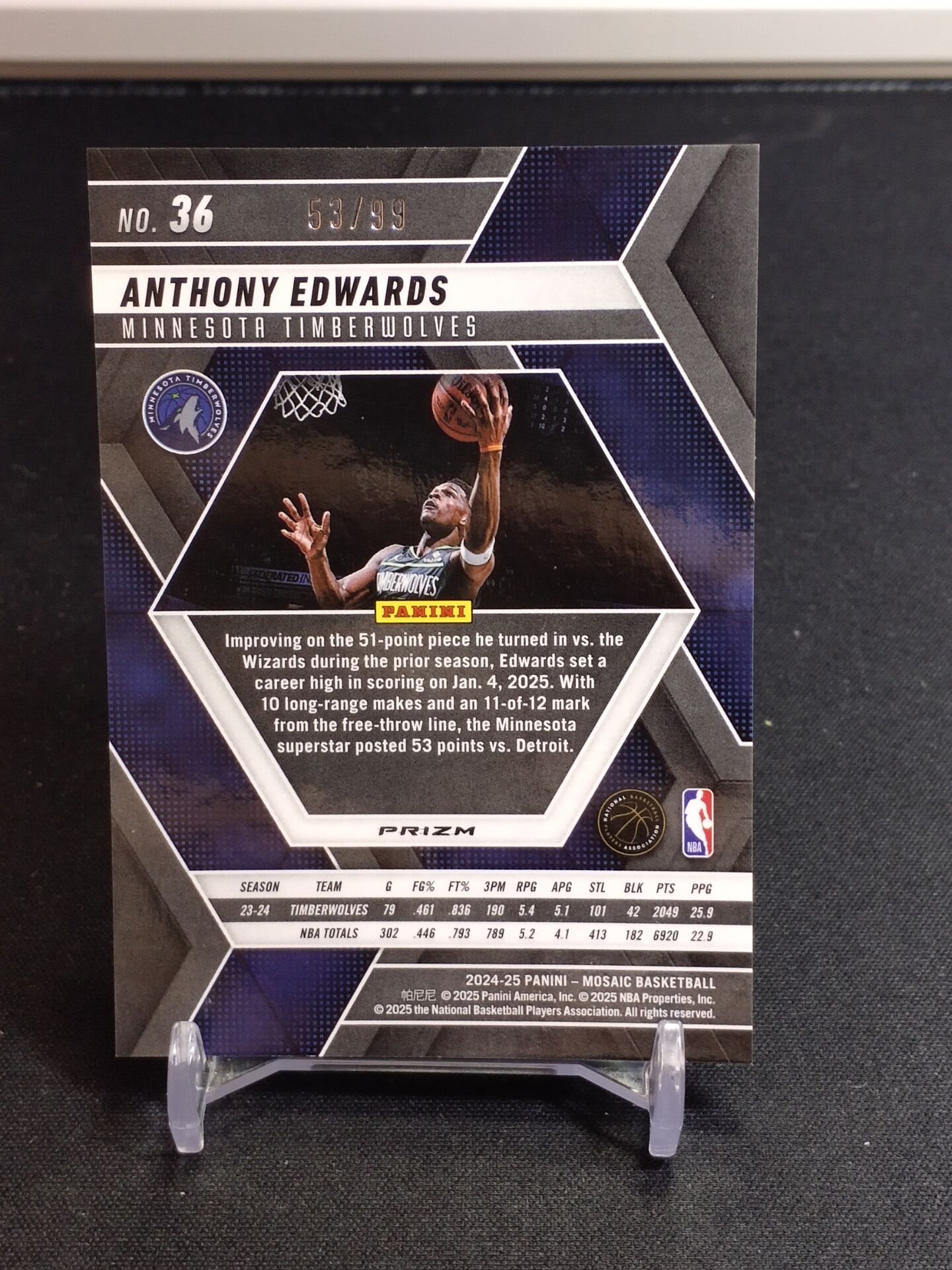 【浩行拍卖 截标预付82%】2024-25 panini mosaic anthony edwards 马赛克 安东尼 爱德华兹 华子 红泡泡折 折射 53/99编 专收必备 瑕疵看图「晴桔」1128P02緲
