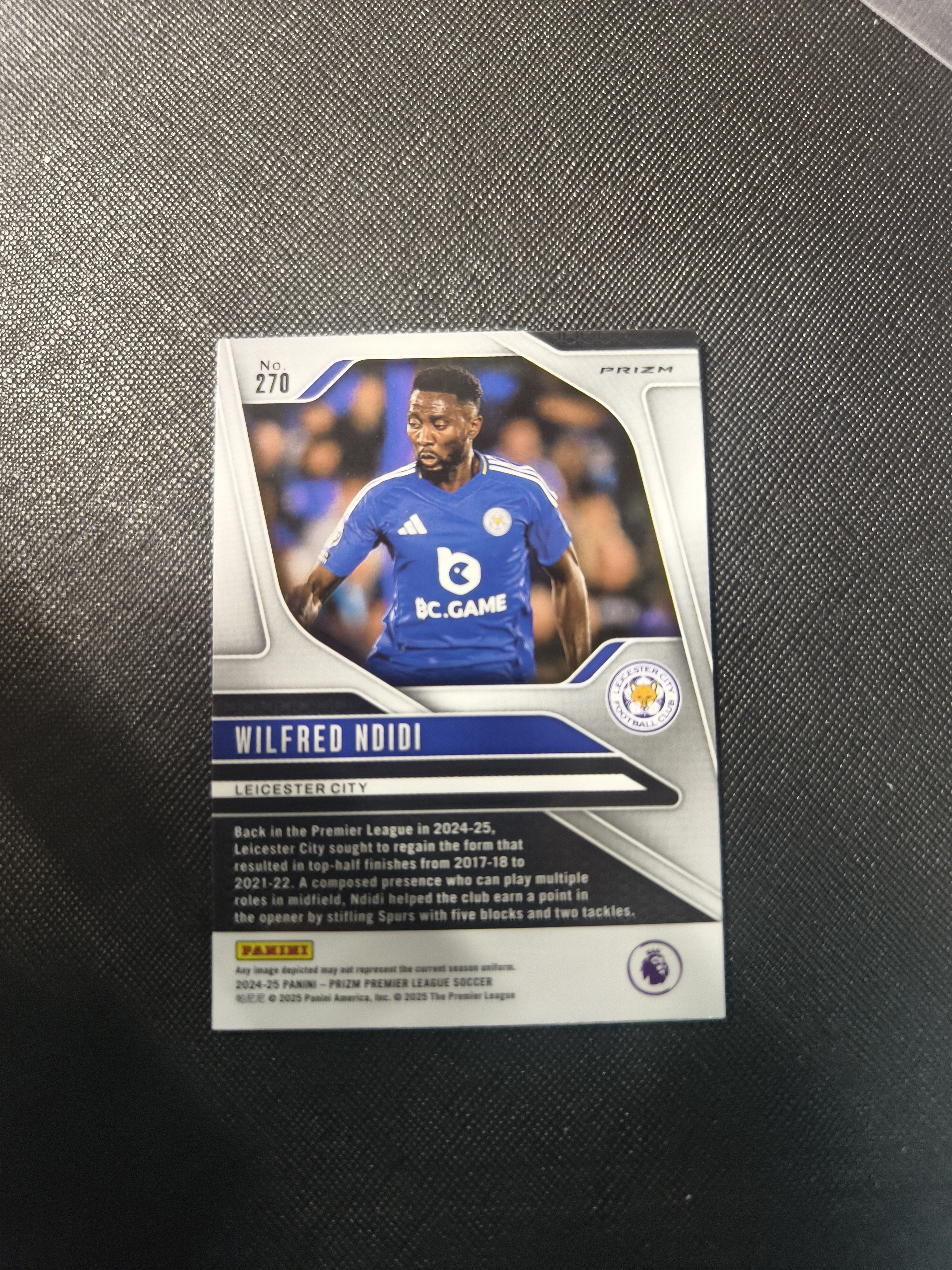 2024-25 Panini Prizm Wilfred Ndidi Panini 英超Prizm 莱斯特城 恩迪迪 大比例 Genesis 起源折base 卡背细节如图 尼日利亚 贝西克塔斯GS