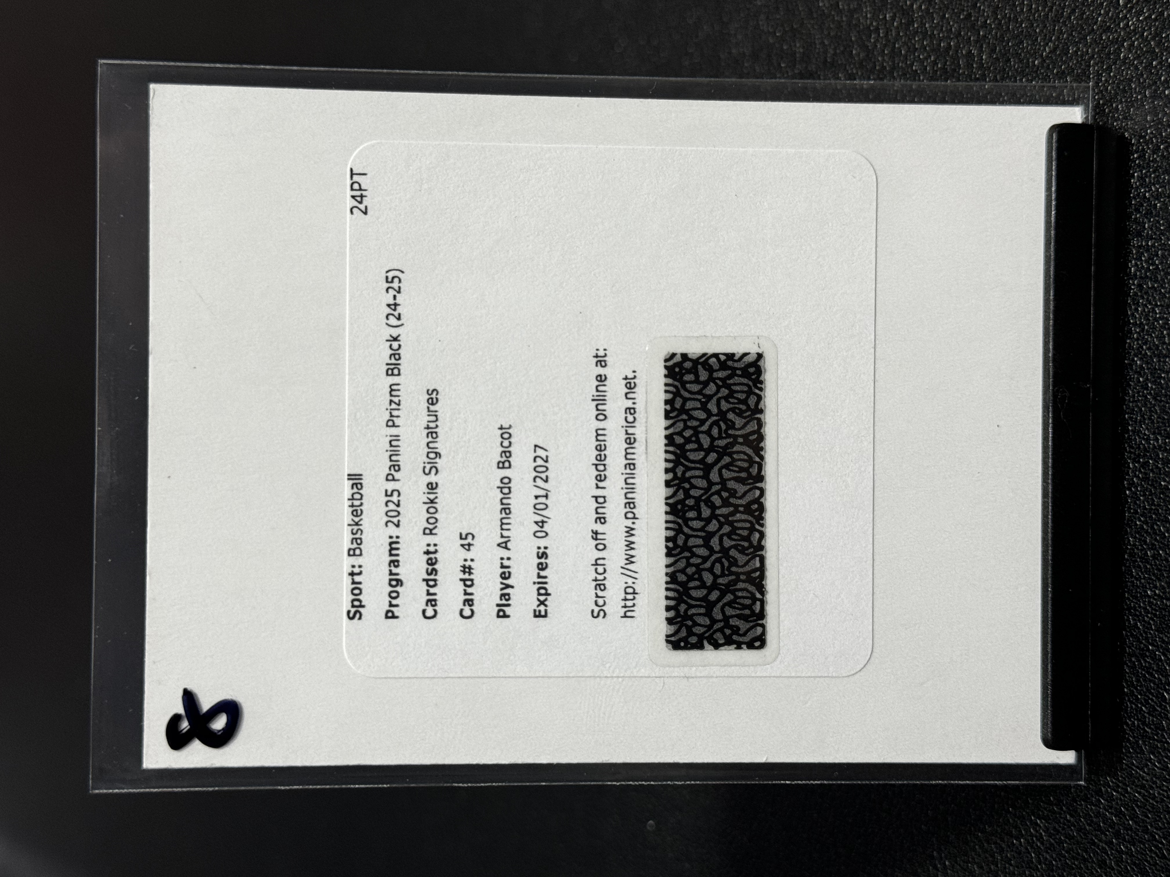 2024-25 Panini Prizm PZ Black 交换版 交换板 新秀 签字 Armando Bacot 阿曼多・巴科特 潜力无限 LWLQ