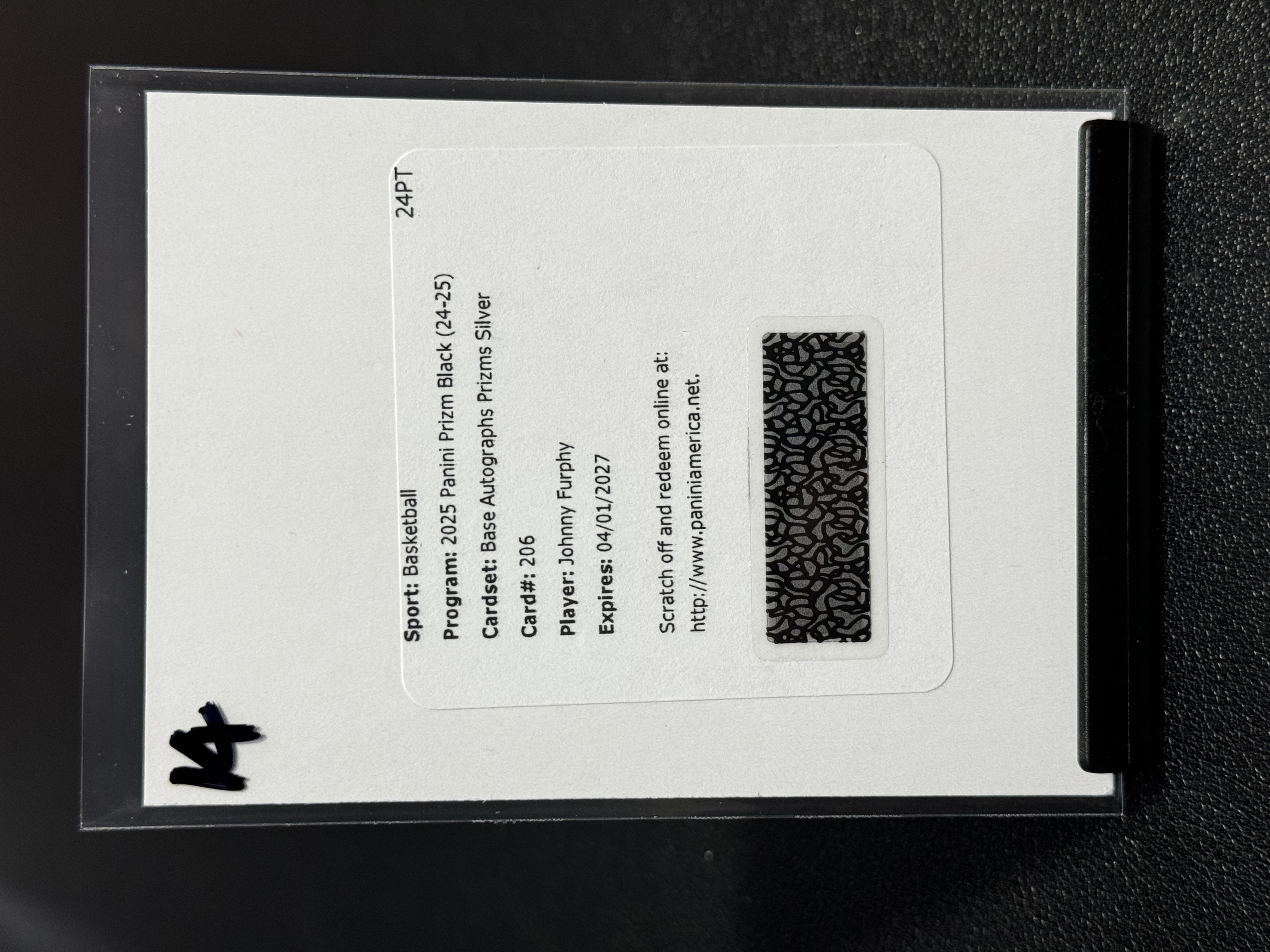 2024-25 Panini Prizm PZ Black 交换版 交换板 银折 新秀 签字 Johnny Furphy 约翰尼・弗菲 潜力无限 LWLQ