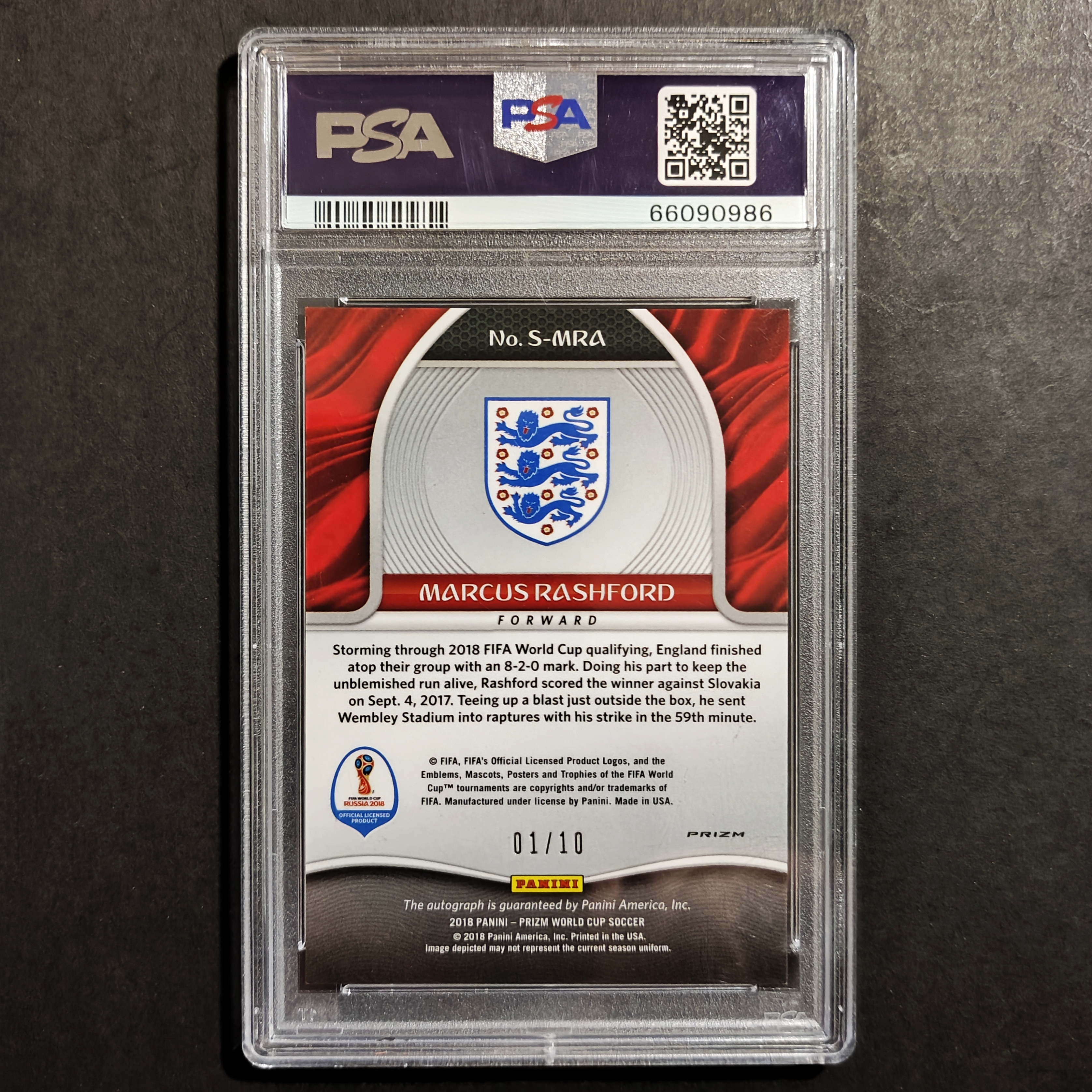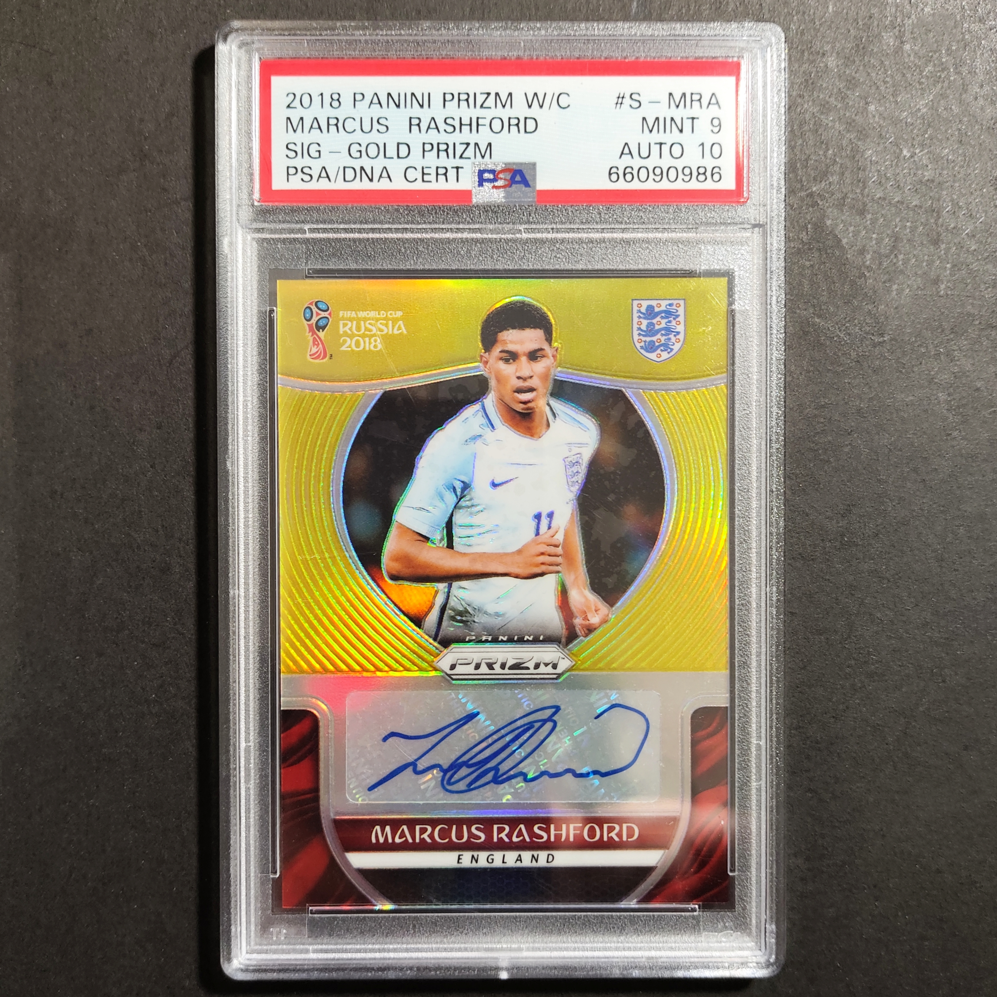 2018 Panini Prizm Fifa World Cup Marcus Rashford RC /10编正金折 世界杯英超英格兰曼联PSA评级卡品9签字10分巴萨亚马尔费尔明福登贝林厄姆帕尔默