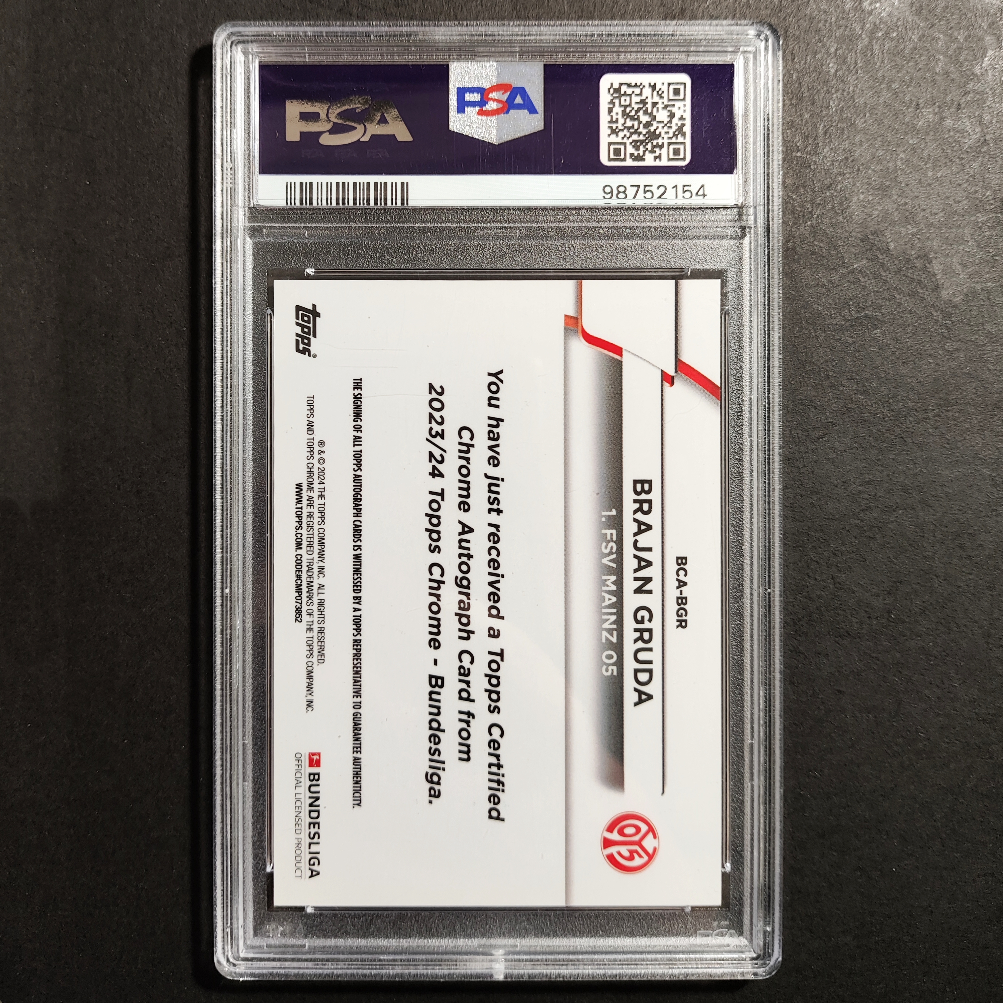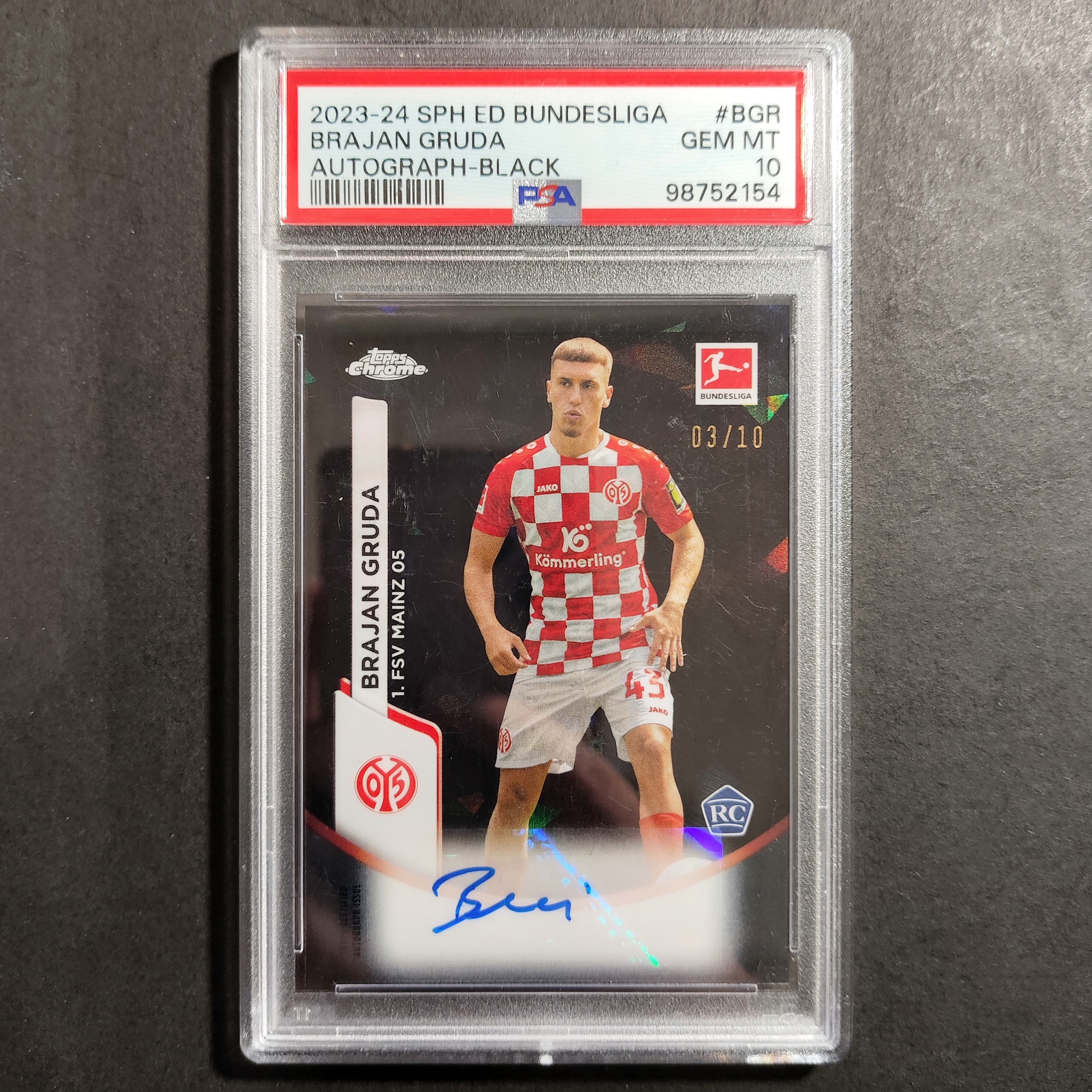 2023-24 Topps Chrome Brajan Gruda RC 格鲁达/10编黑折签字 黑碎冰折射天花板蓝宝石 德国德甲PSA评级卡品10分 美因茨布莱顿布赖顿吕特佩德罗卡尔比朔夫沃尔特马德