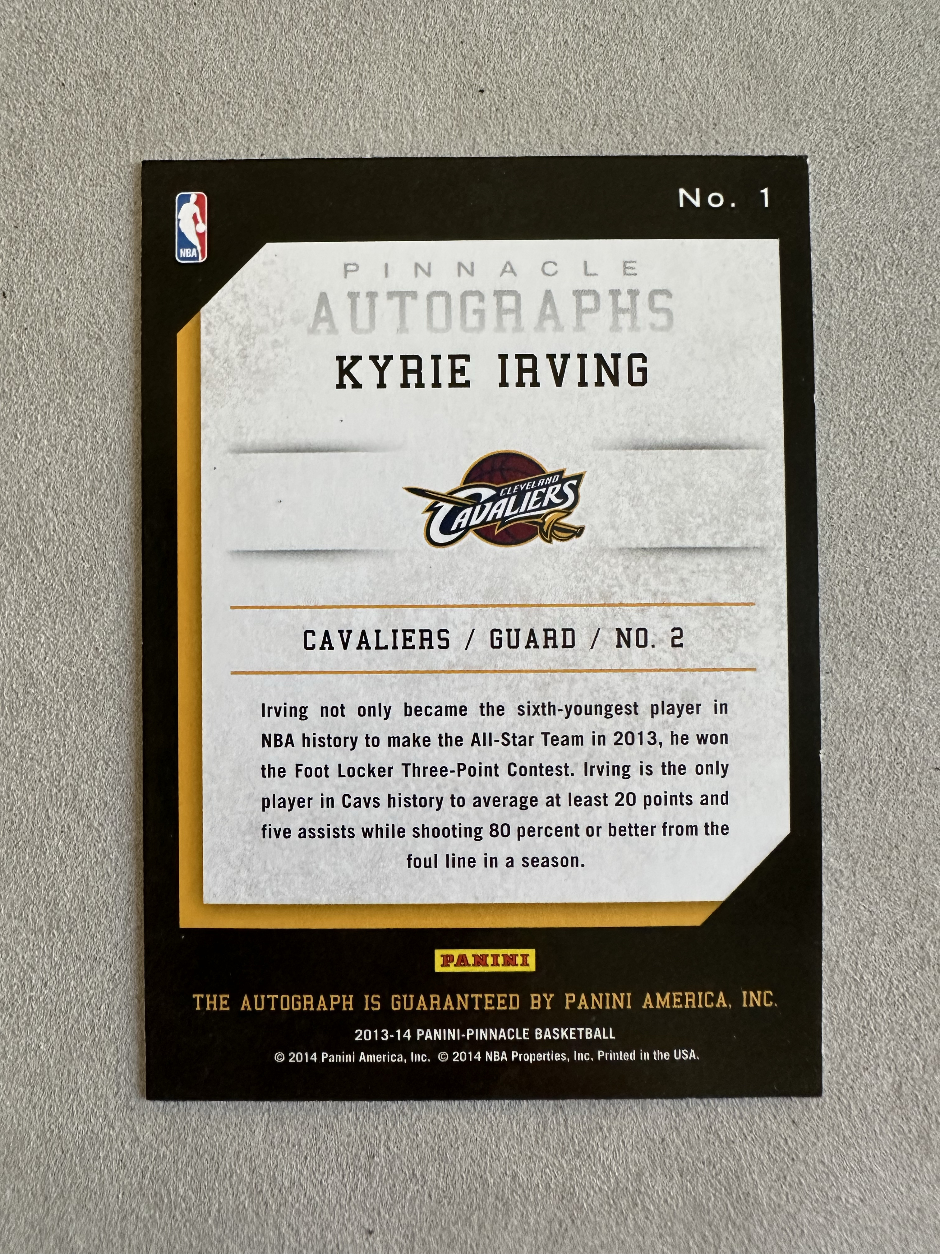 2013-14 Panini Pinnacle Kyrie Irving 骑士队 凯里欧文 巅峰 签字 卡签 瑕疵如图 卡量稀少 凑套必备(莫总01)