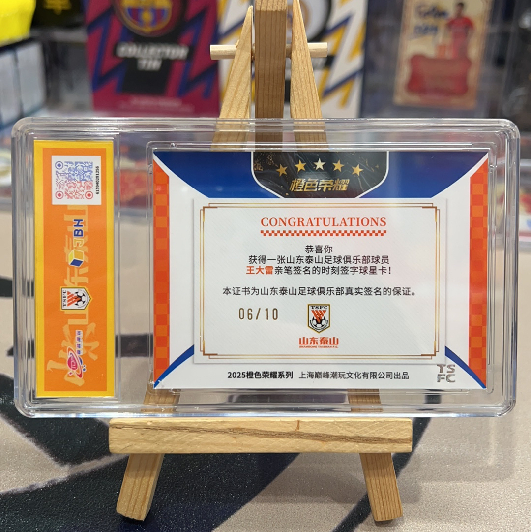 2025 巅峰潮玩 橙色荣耀 王大雷 【耳朵卡社】巅峰潮玩 2025 山东泰山队盒 橙色荣耀 金折 时刻 签字卡 金笔 卡签 低编 4/10编 王大雷 JBH9.5 签字9 sollent