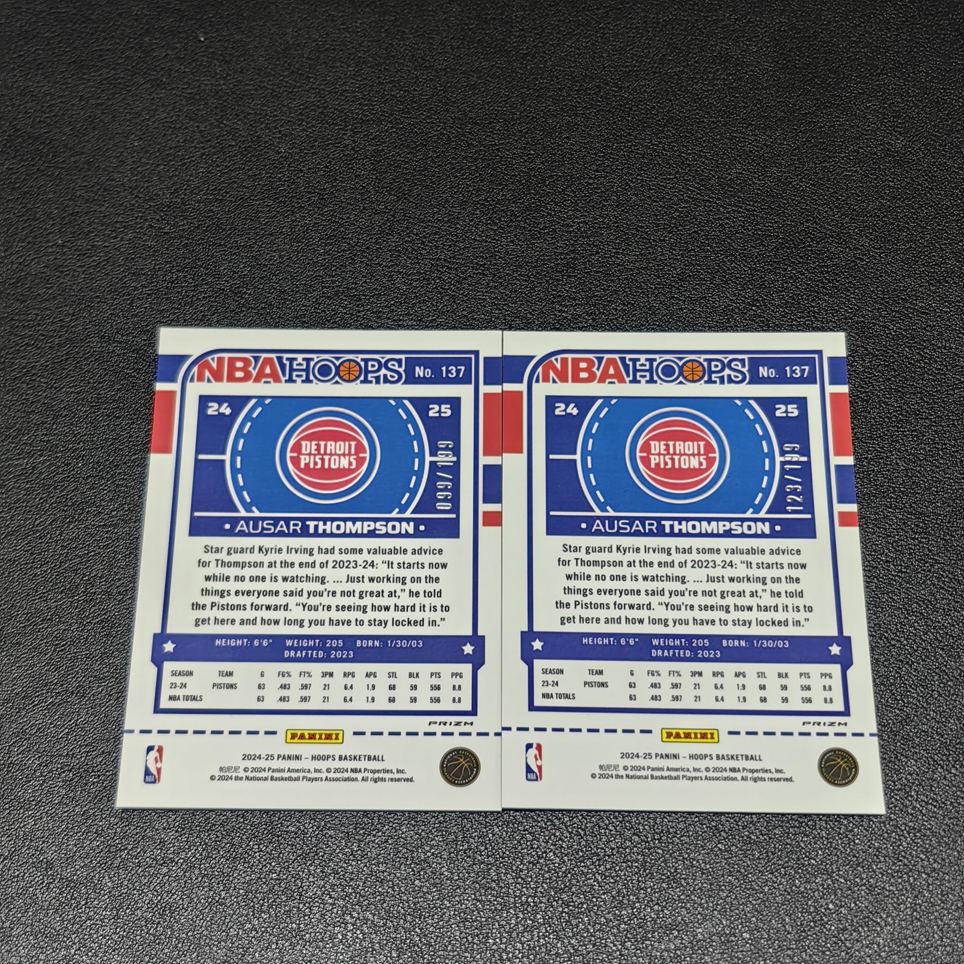 【浩行拍卖 截标预付82%】2024-25 panini hoops Ausar Thompson 活塞 奥萨尔 汤普森 橙折 折射 123/199编 99/199编 带编看图 专收必备 BH22「甜财」1129D06龘