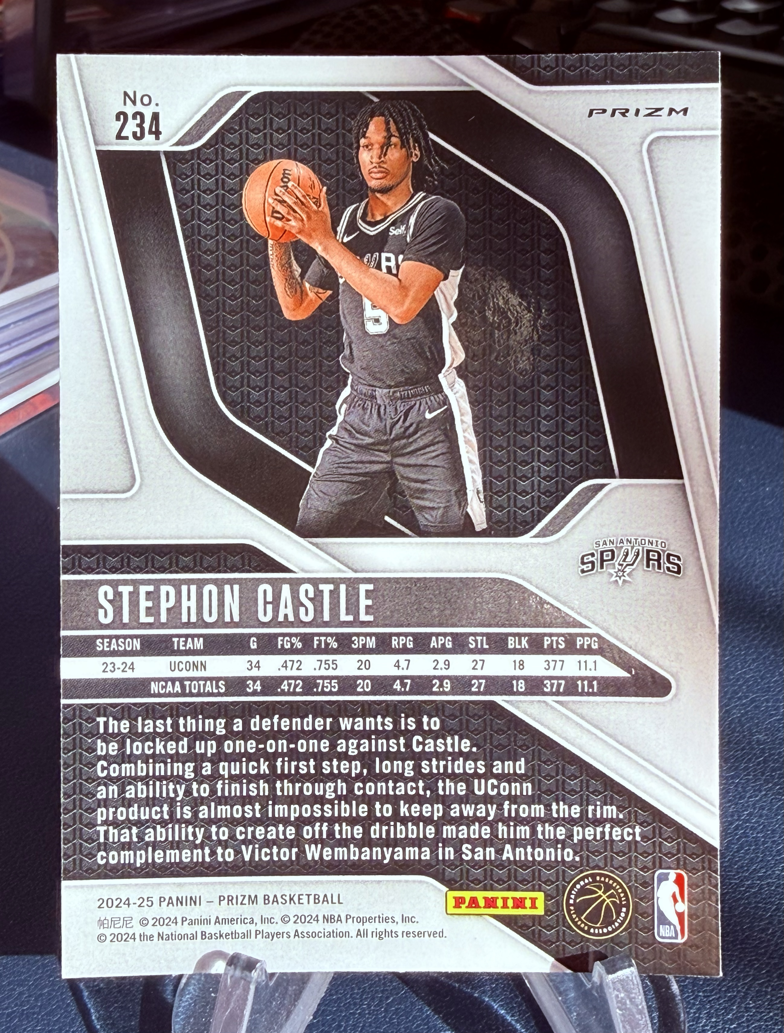 2024-25 Panini Prizm Stephon Castle RC 【安迪拍卖】nba pz 马刺新秀rc 最佳新秀 斯蒂芬 卡斯尔 红碎闪折射正base 超大比例投资收藏必备