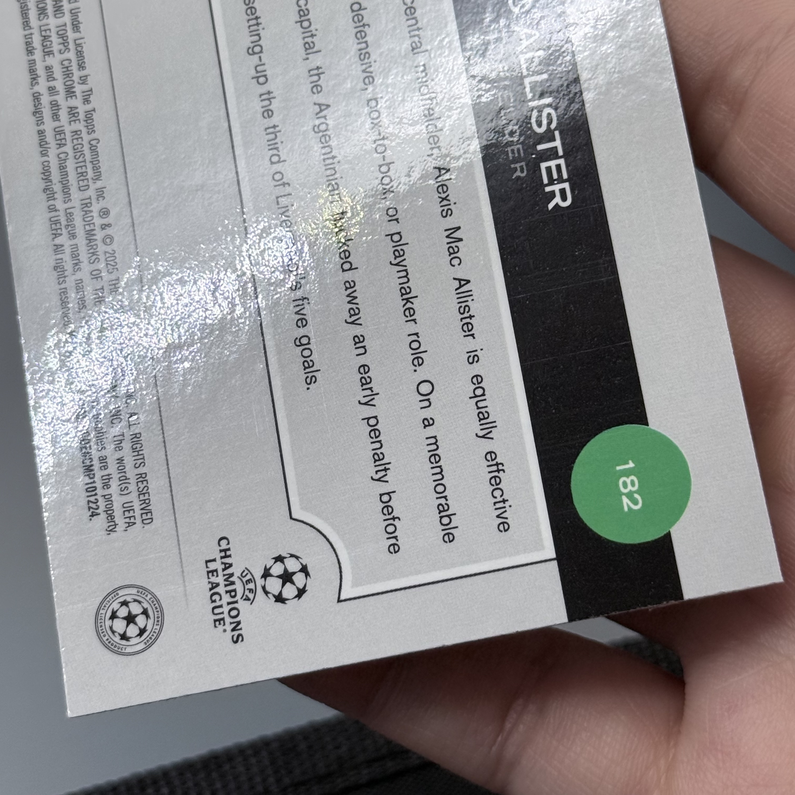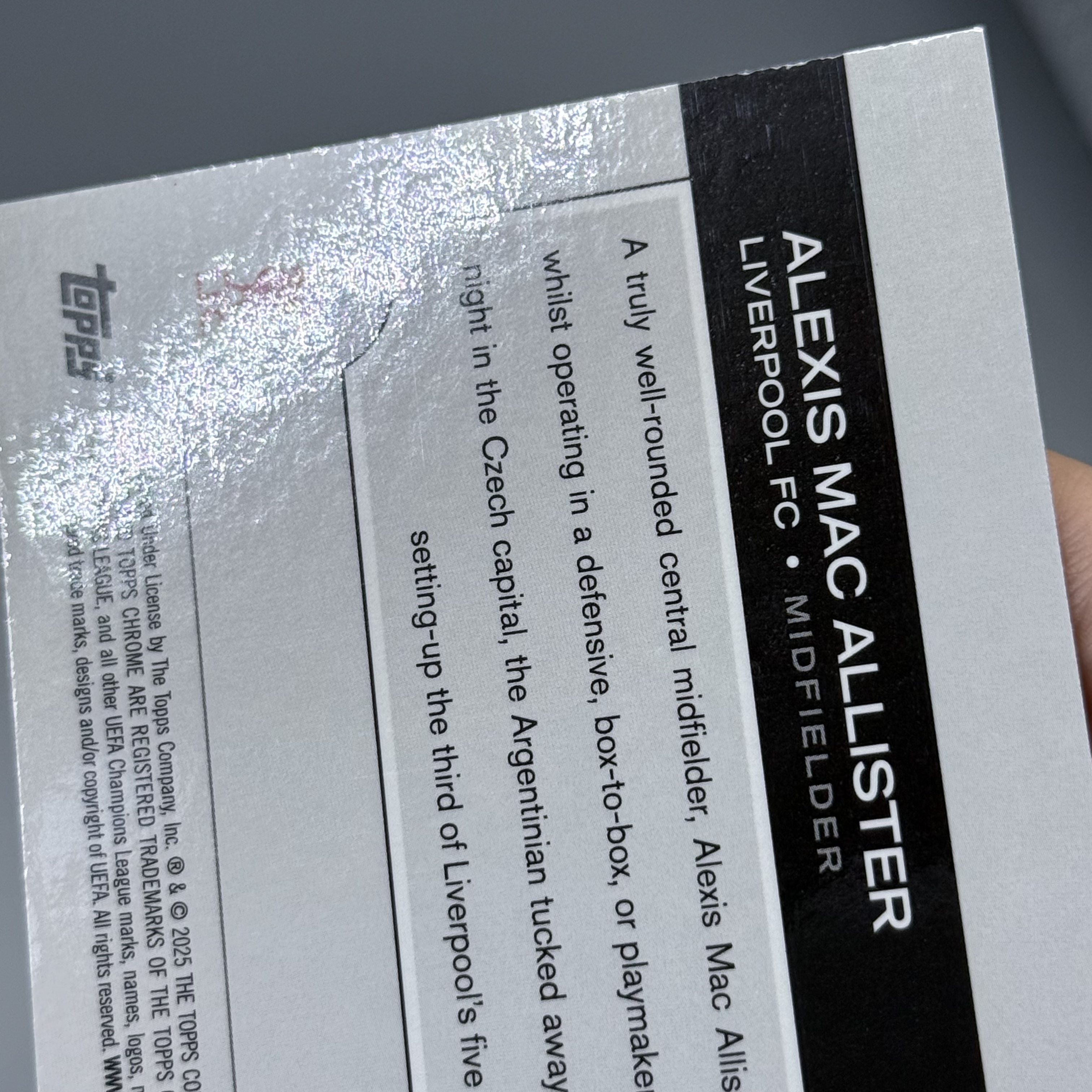 【UD代卖-小西梅】2024-25 Topps Chrome 欧冠欧战TC Alexis Mac Allister 麦卡利斯特 利物浦 015/225编 夜视波纹折 收藏必备 微瑕 卡品如图