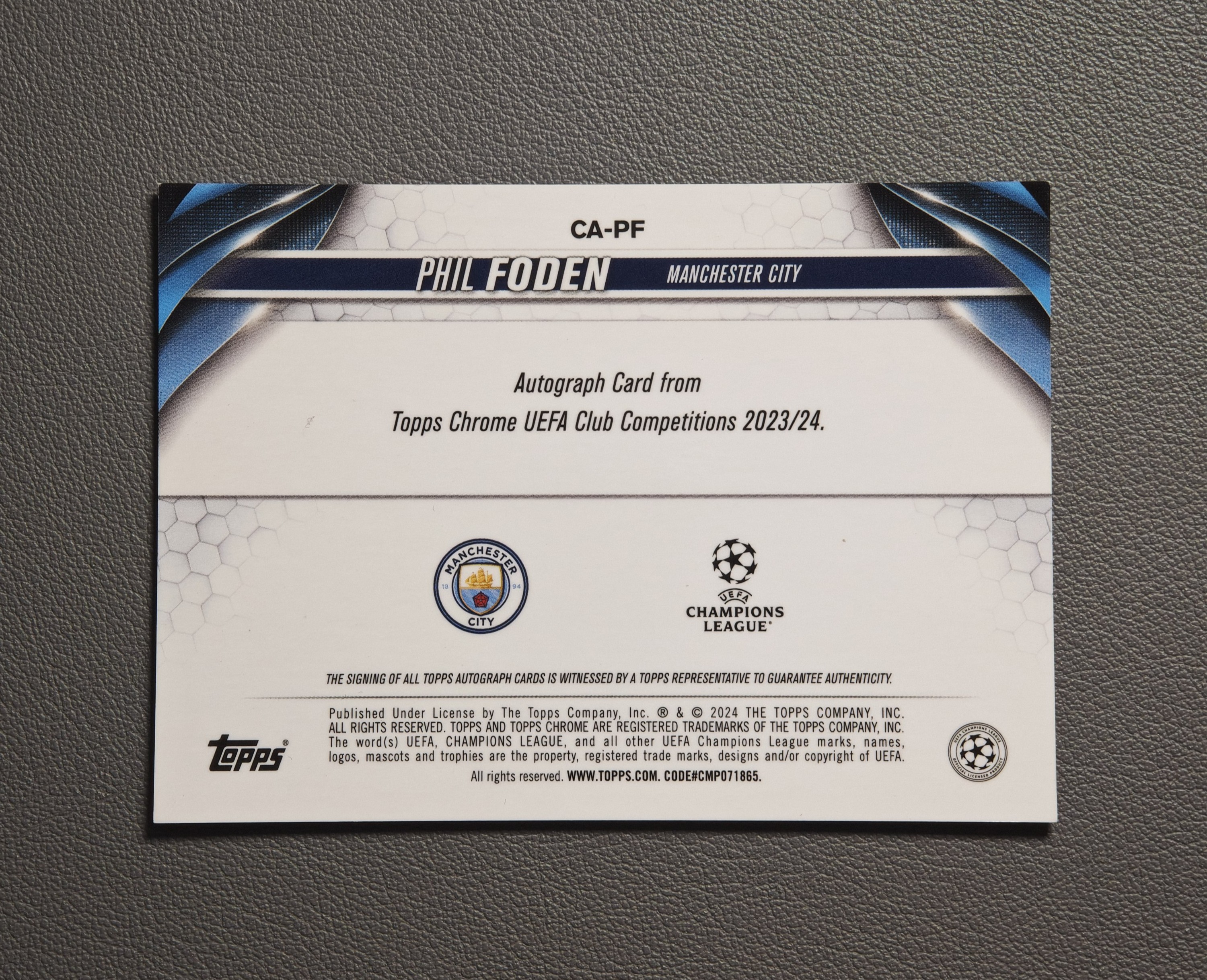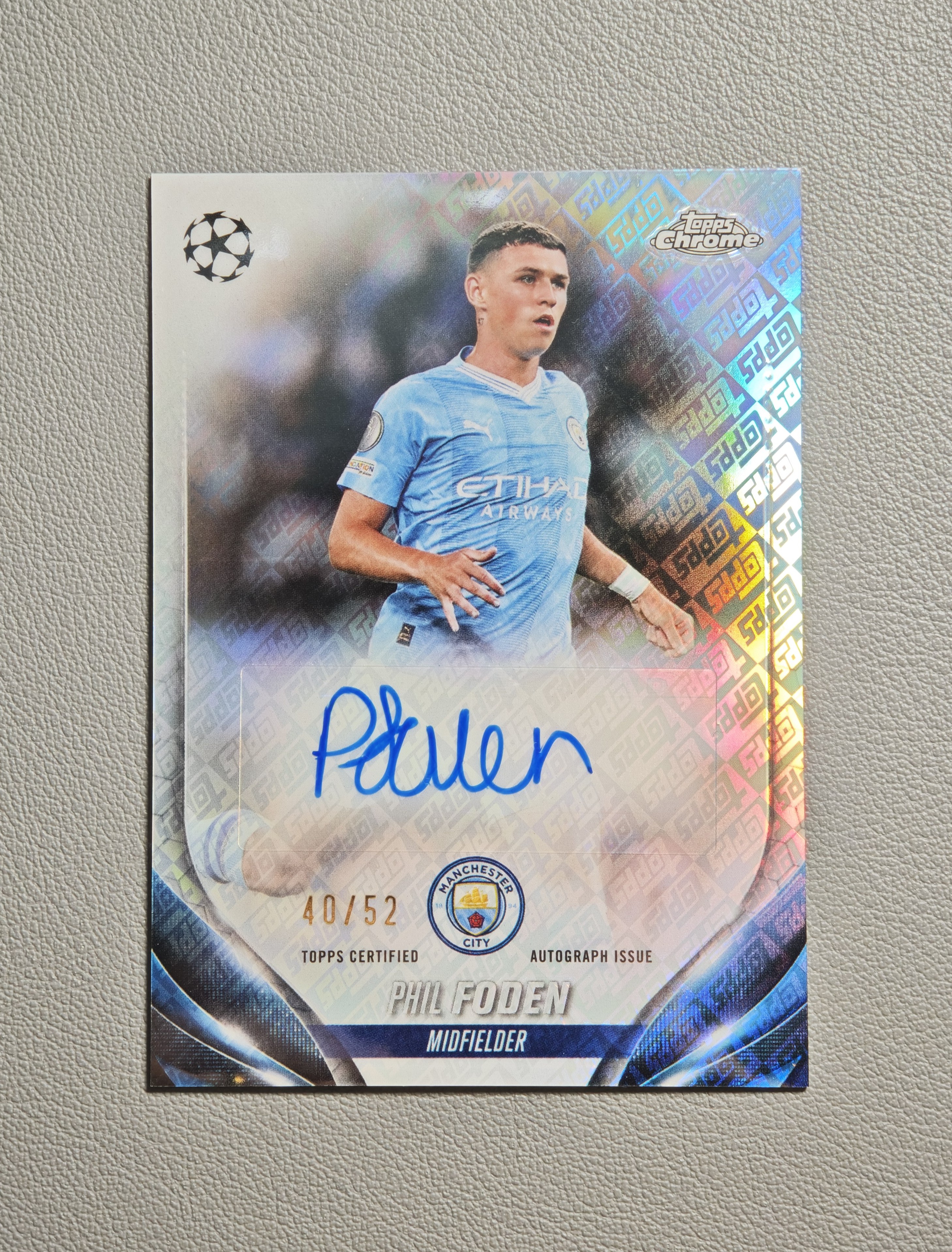【闪电拍卖】2024 Topps Chrome Phil Foden 菲尔 福登 太子 曼城 足球欧冠TC 40/52编 TOPPS折 签字 微瑕 晨1129