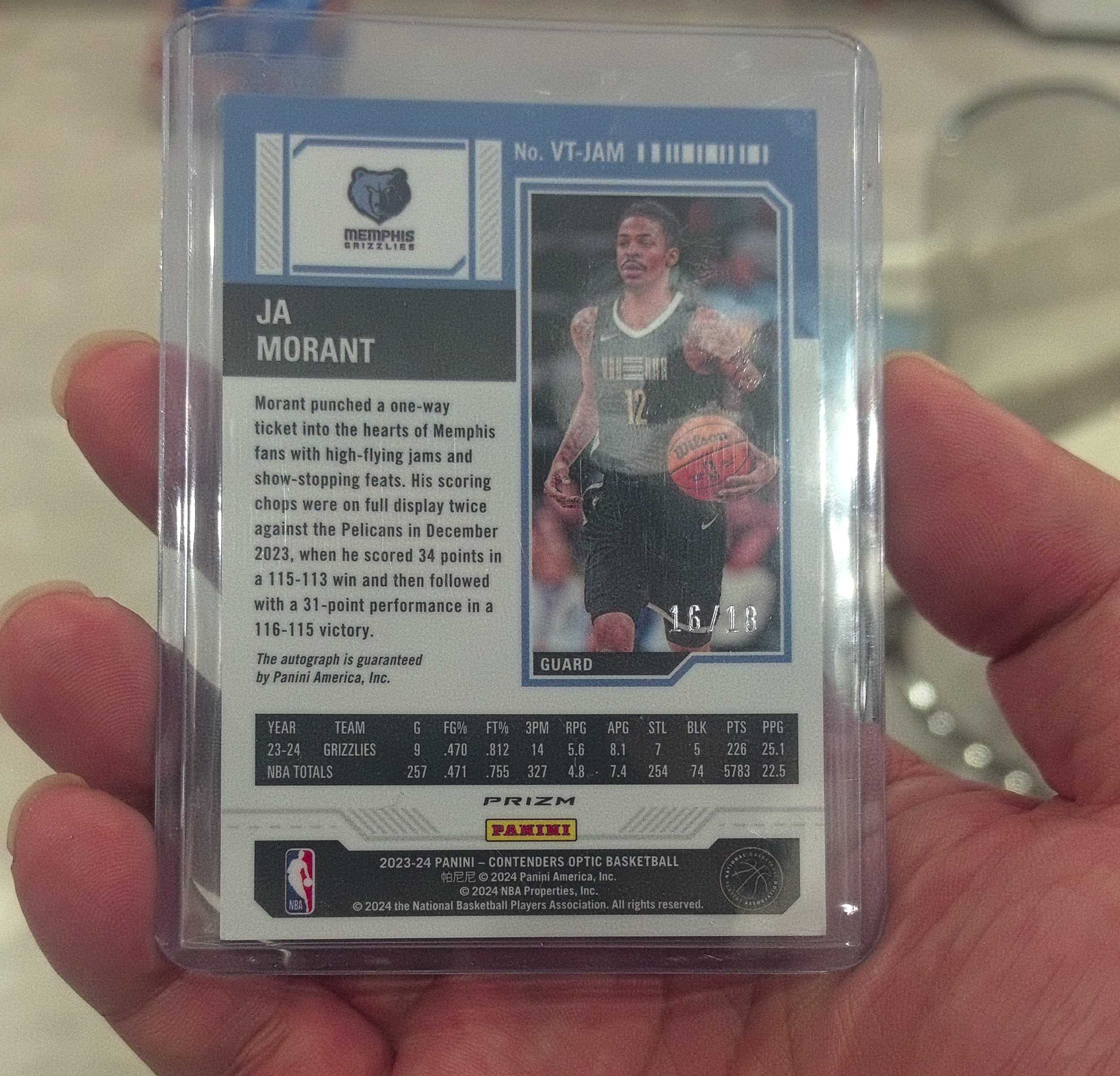 2023-24 Panini Optic Ja Morant 2023-24 Panini Optic Ja Morant OP 灰熊当家 贾 莫兰特 腰王 粉折射 签字 卡签18编 好人好卡 收藏必备