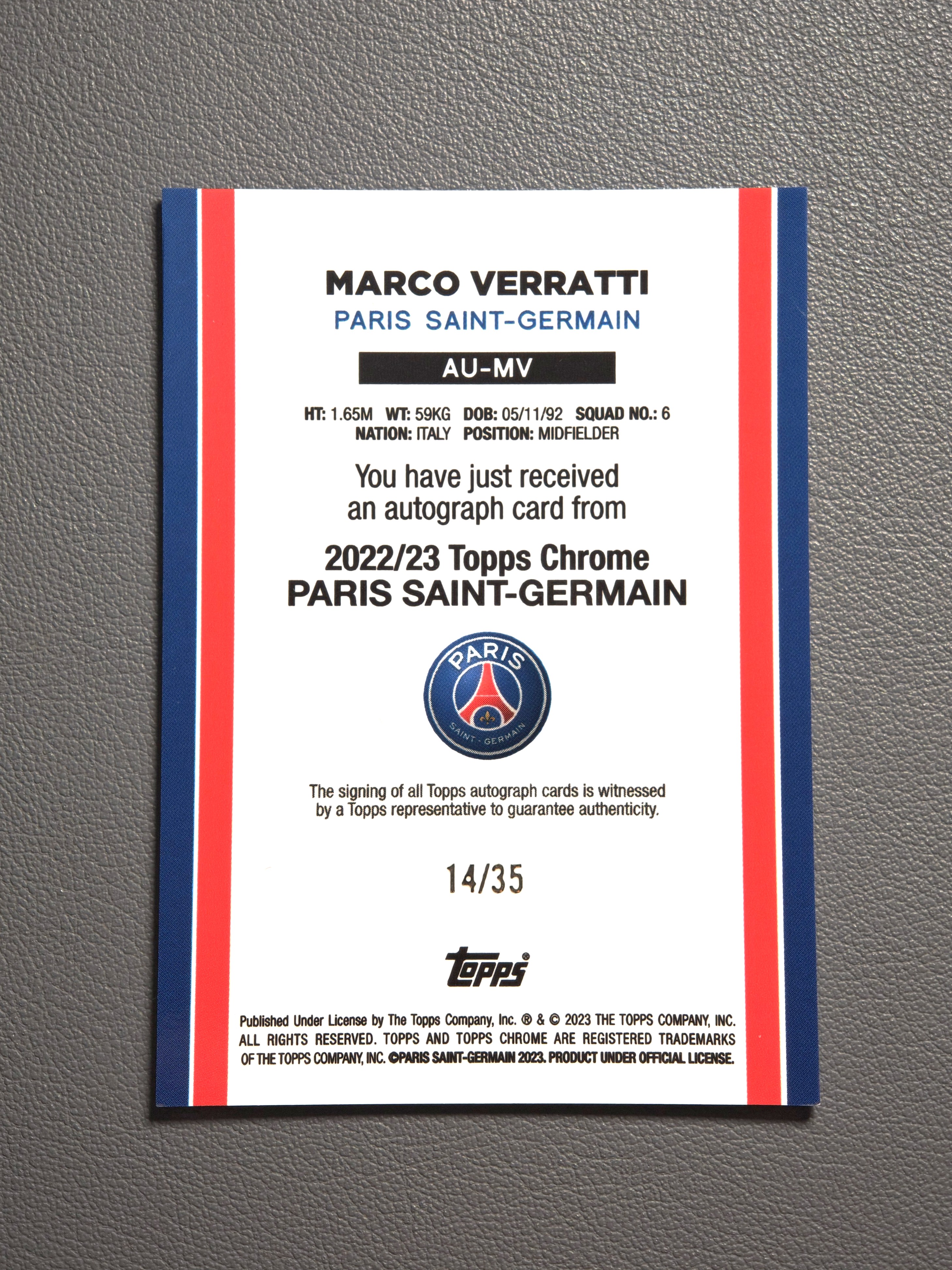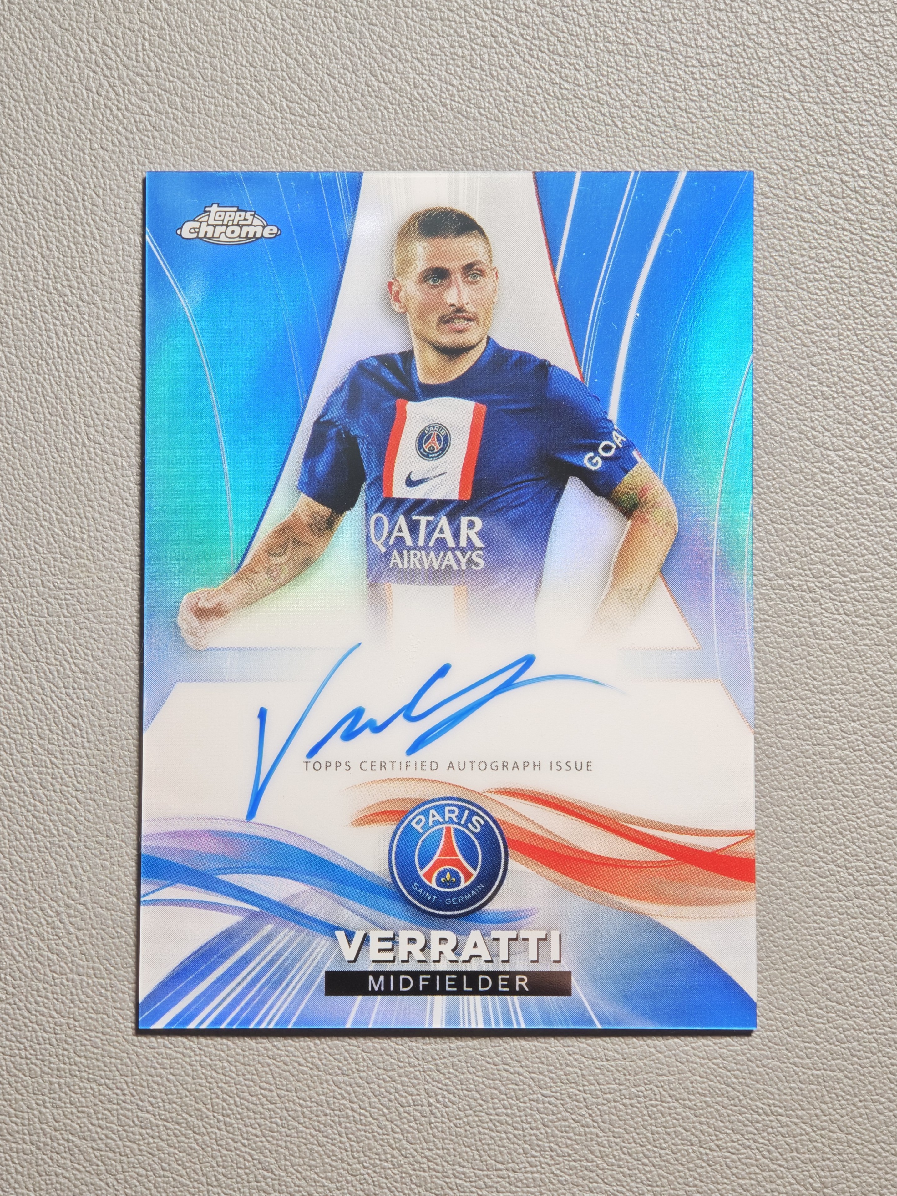 【闪电拍卖】2023 Topps Chrome Marco Verratti 大巴黎高端队盒 巴黎圣日耳曼 维拉蒂 蓝折 签字 卡签 /35编 微瑕 晨1129
