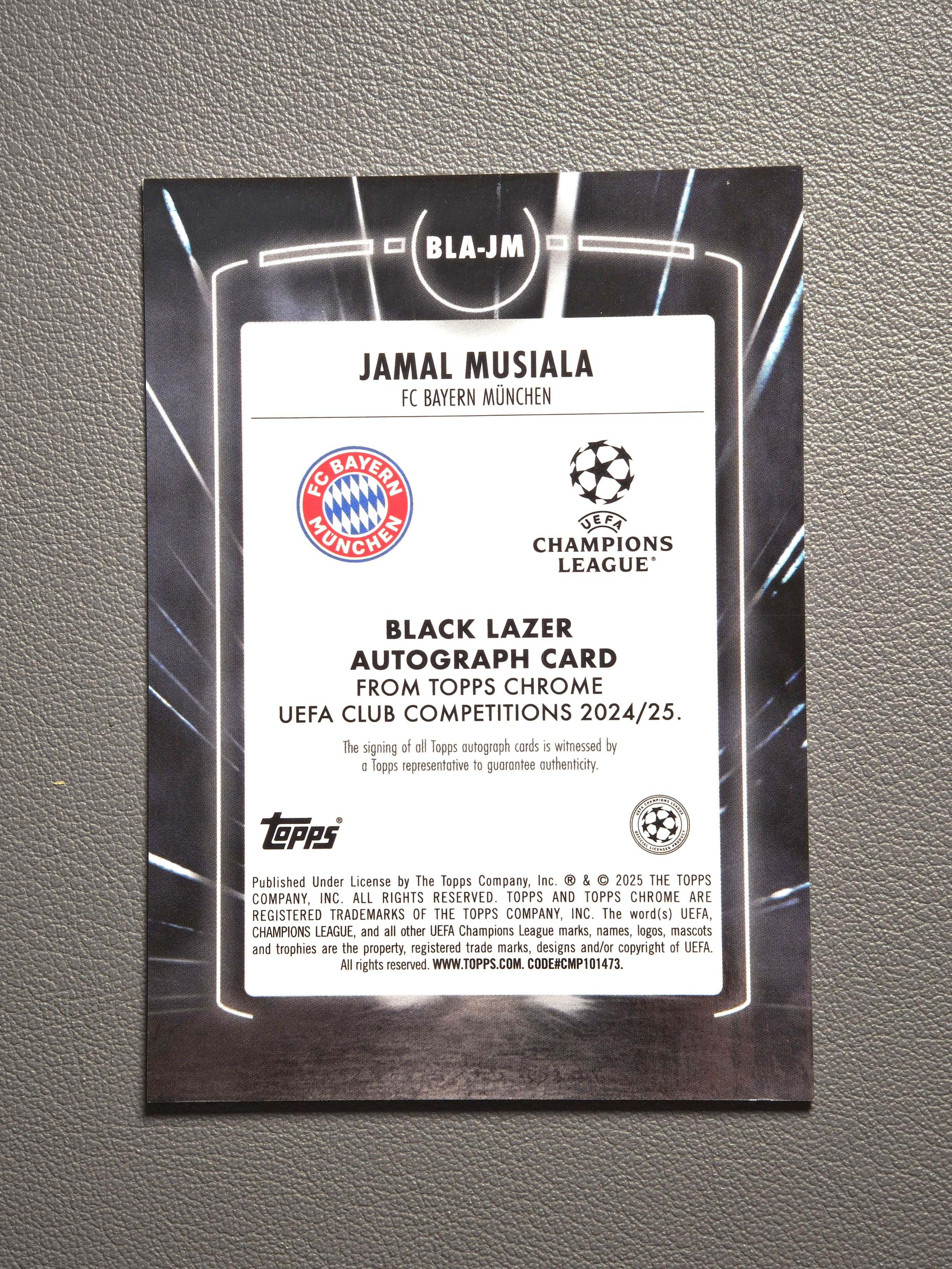 【闪电拍卖】2024-25 Topps Chrome 欧战 Jamal Musiala 拜仁慕尼黑 贾马尔 穆夏拉 签名 穆西亚拉 黑镭射折 签字 微瑕 晨1129