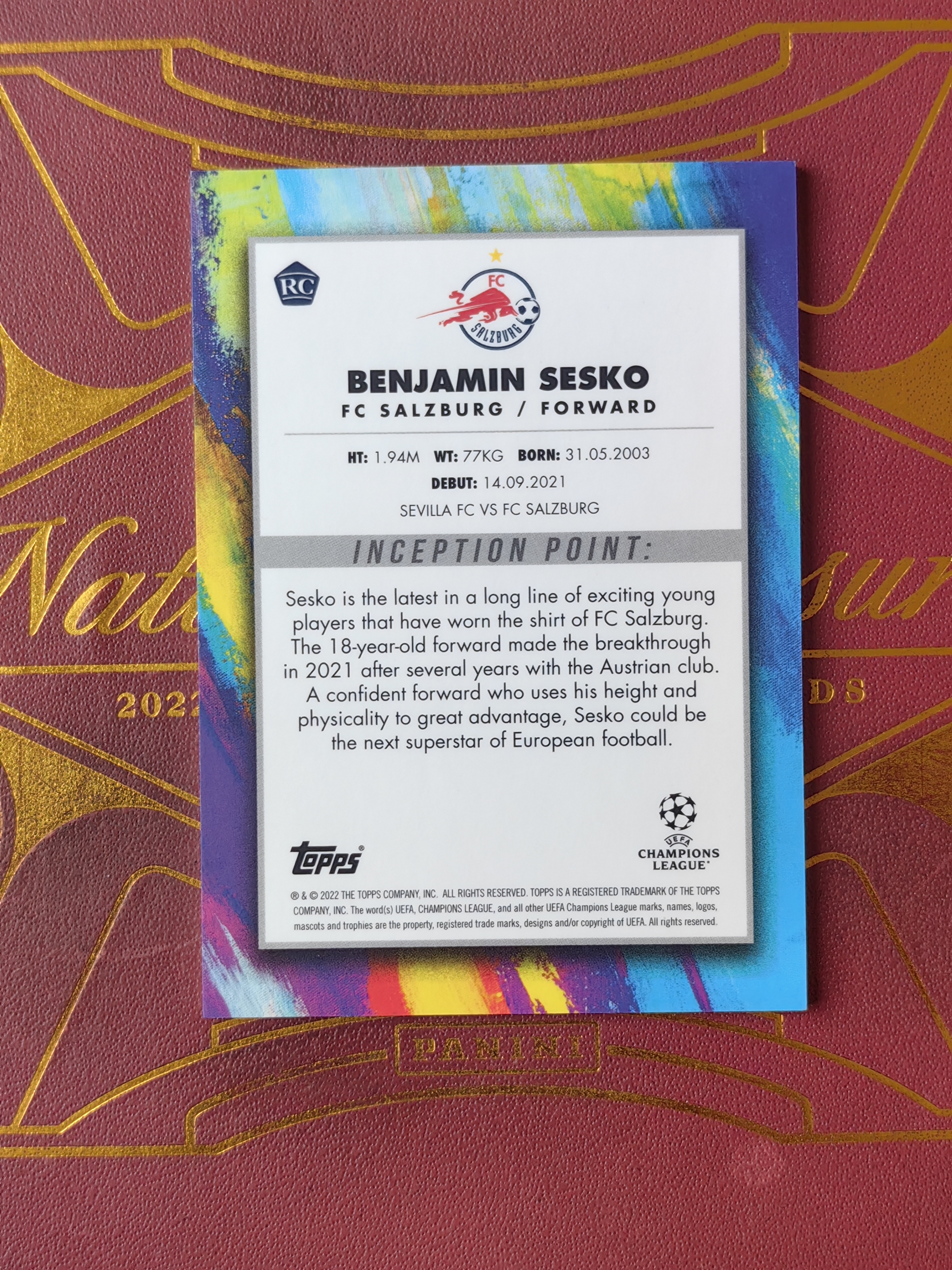 2021-22 Topps Inception Benjamin Šeško RC 卡卡星球拍卖 盗梦空间 欧冠 萨尔茨堡红牛 赛思科 塞斯科 谢什科 新秀 RC 4/5编 橙平行 曼联 斯洛文尼亚