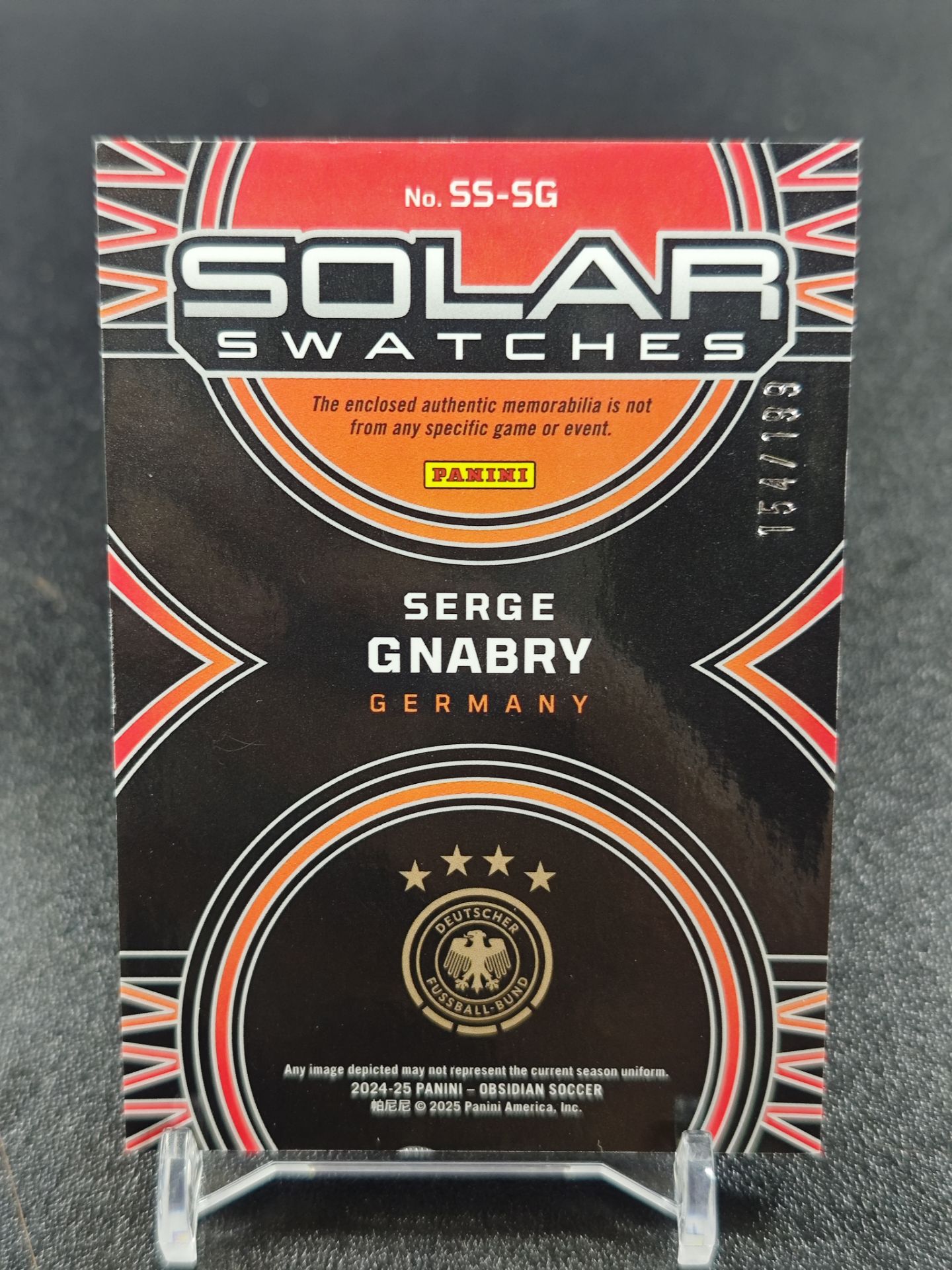 【浩行拍卖 截标预付82%】2024-25 panini obsidian serge gnabry 黑曜石 德国 塞尔日 格纳布里 球衣 物料 折射 154/199编 瑕疵看图 专收必备「颤动重上」1130單