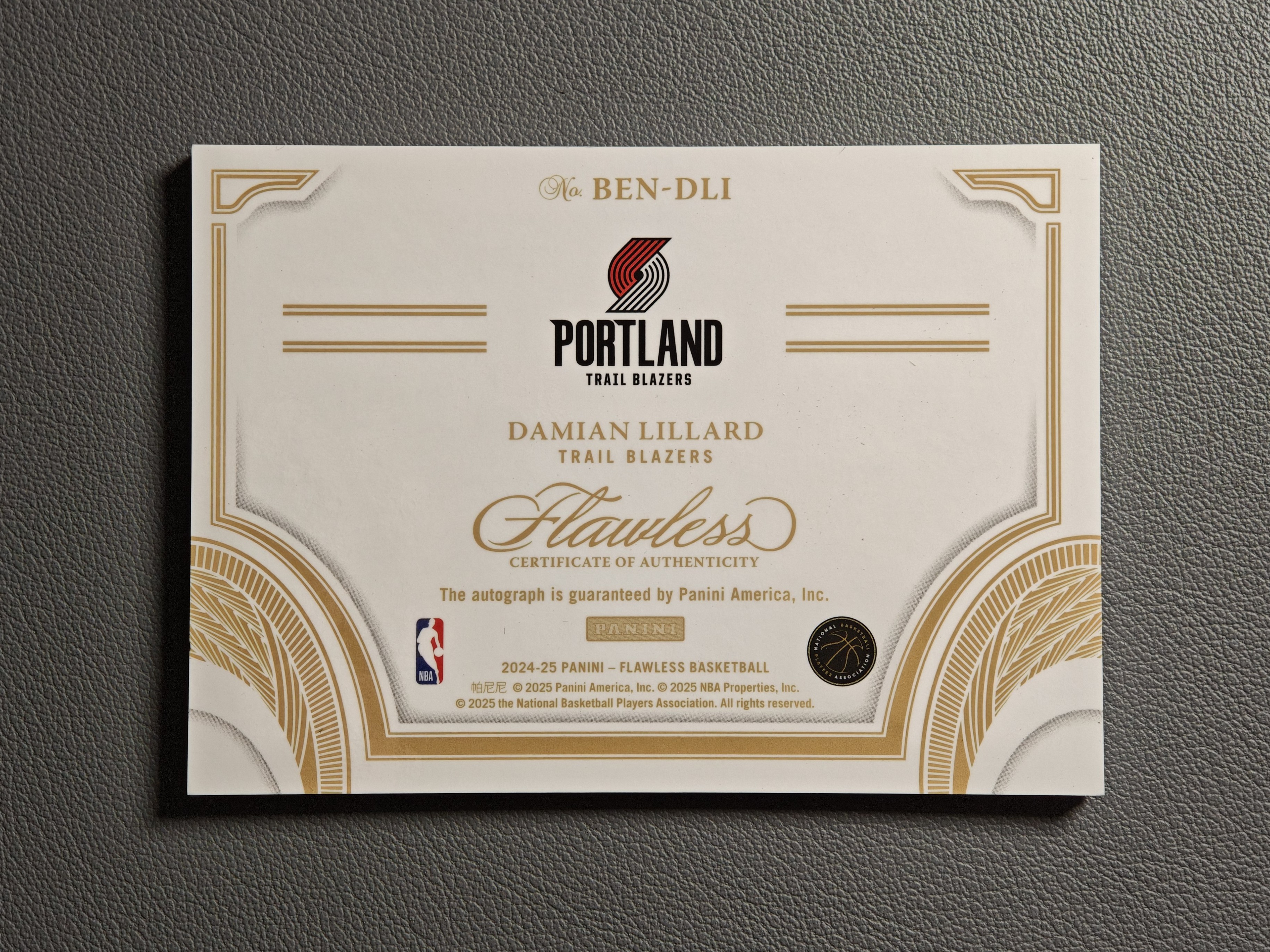 【闪电拍卖】2024-25 Flawless Damian Lillard 手提 开拓者 达米安 利拉德 利指导 卡签 /25编 75大巨星 标杆 71分 数据签 签字 卡砖发货 微瑕 WC1130