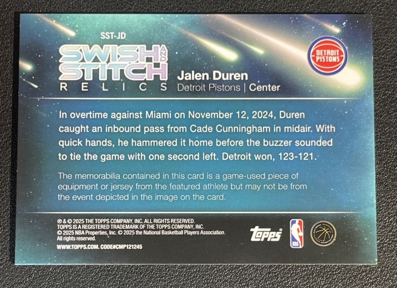 2025 Topps NBA Flagship Jalen Duren 376 杰伦 杜伦 活塞 Swish Stitch 折射 点点折 球衣 物料 微瑕如图 卡品如图 M哥