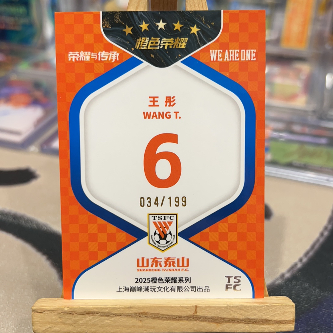 2025 巅峰潮玩 橙色荣耀 王彤 【耳朵卡社】巅峰潮玩 2025 山东泰山队盒 橙色荣耀 铜折 34/199编 王彤 sollent
