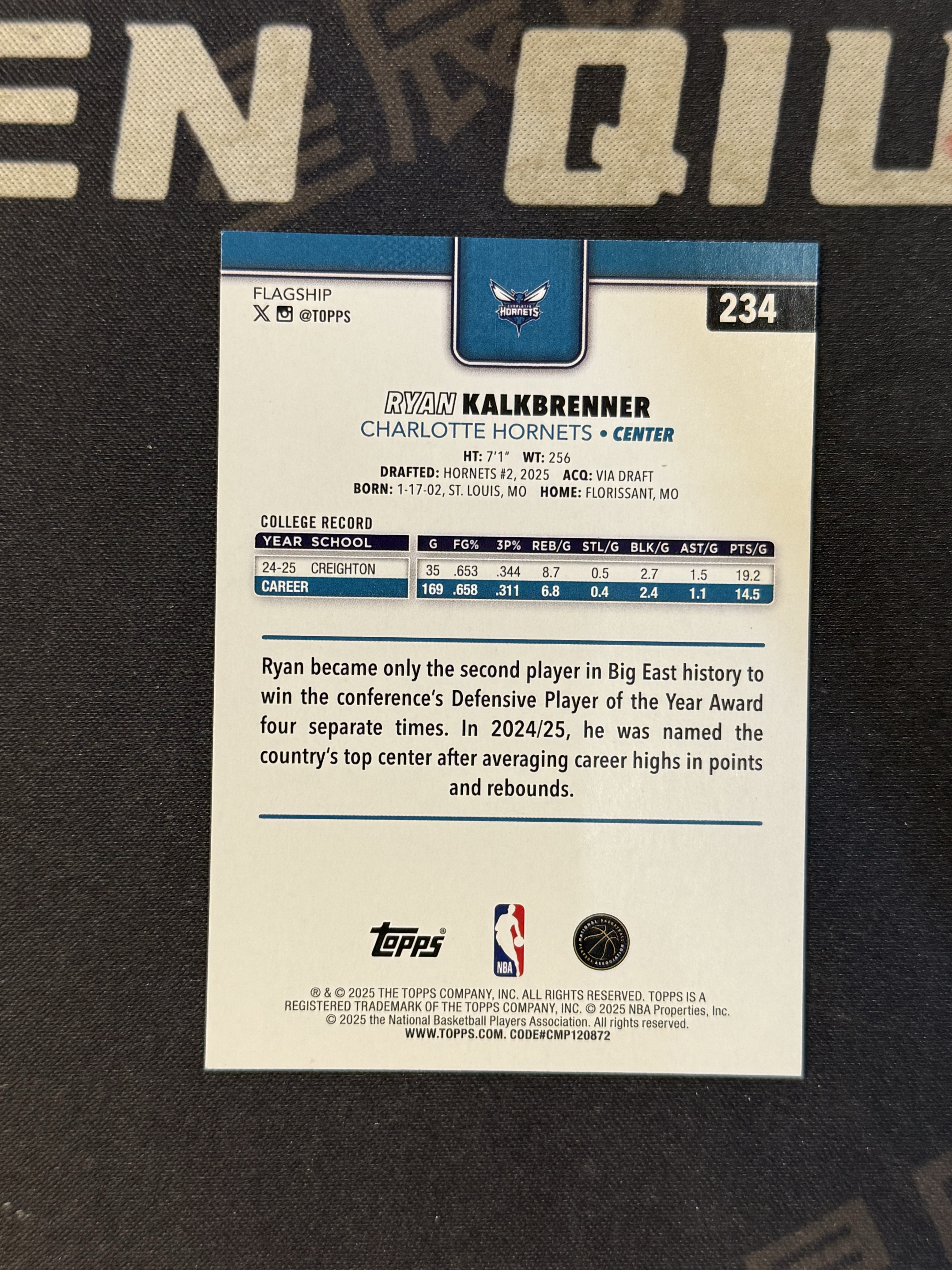 2025 Topps NBA Flagship Ryan Kalkbrenner RC 223 瑞安 卡尔克布伦纳 黄蜂 新秀 折射 铜折 2025编 卡品如图 收藏必备 狐妖