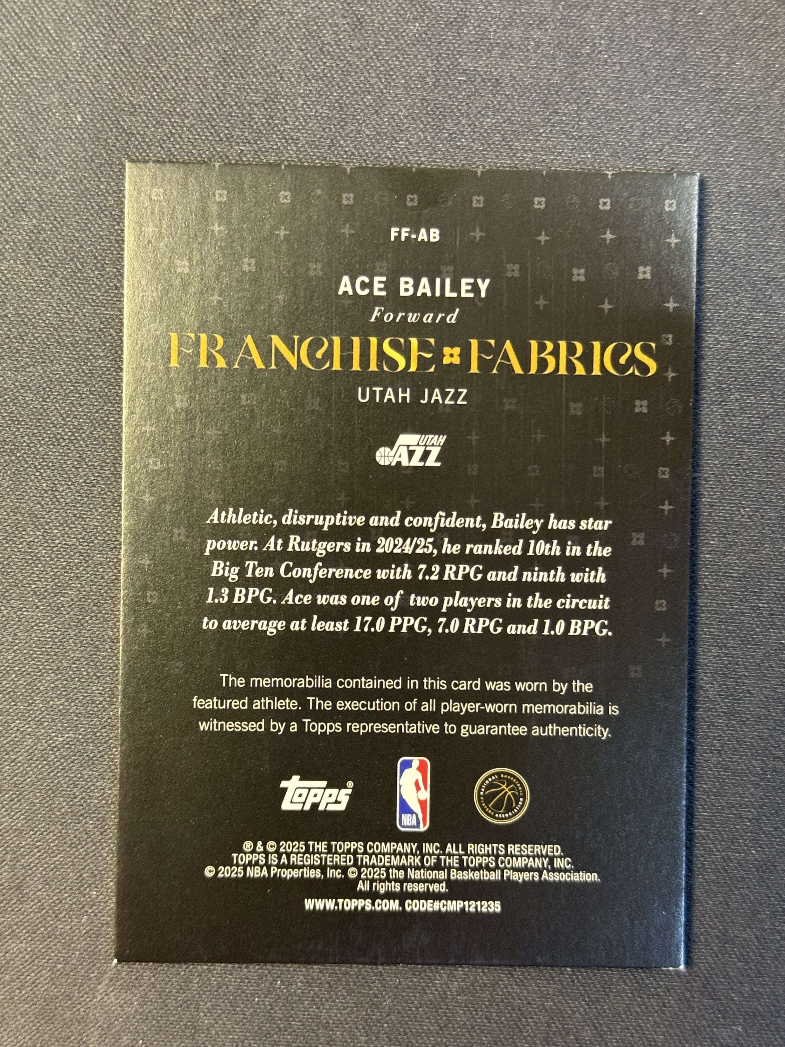 2025-26 Topps Flagship Airious "Ace" Bailey RC 埃斯贝利 新秀 亲穿 球衣 物料 爵士 卡品如图 收藏必备 愤怒
