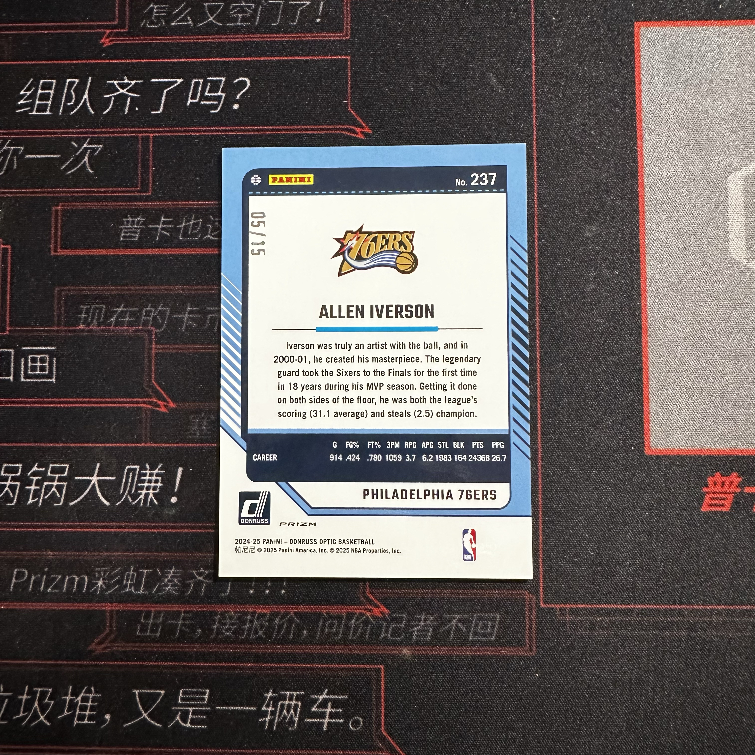 [qz拍卖]2024-25 Panini 杜蕾斯 Donruss Optic 76人 艾弗森 艾佛森 Allen Iverson 5/15编白圈圈折 大比例 潜力无限 专收必备