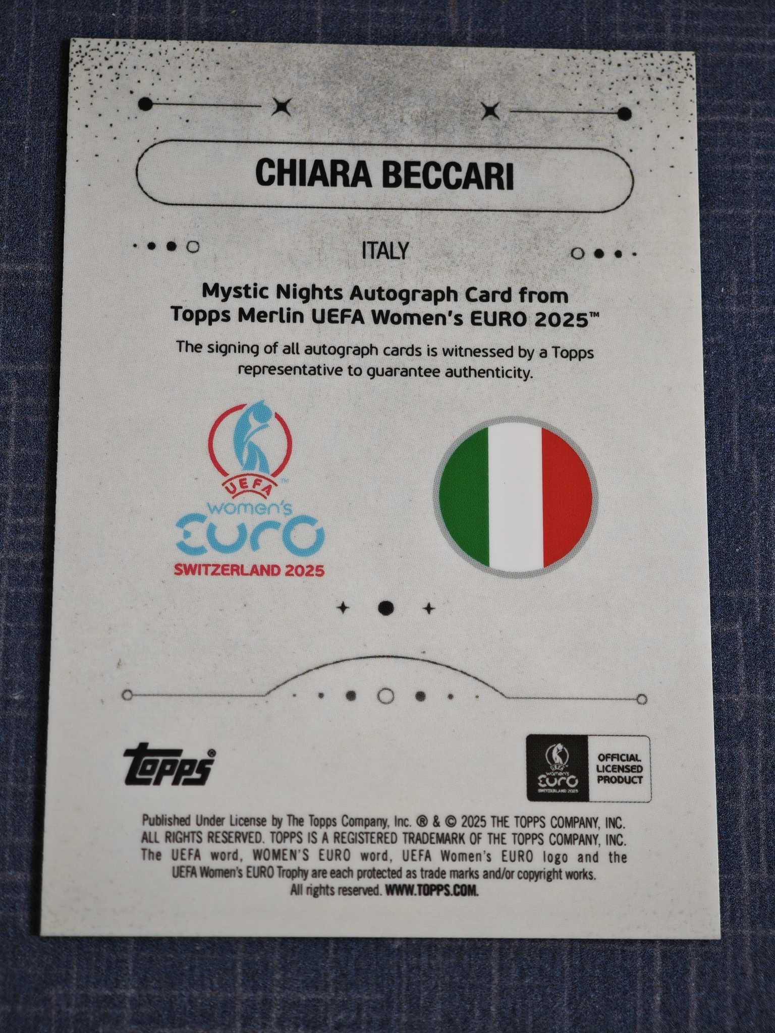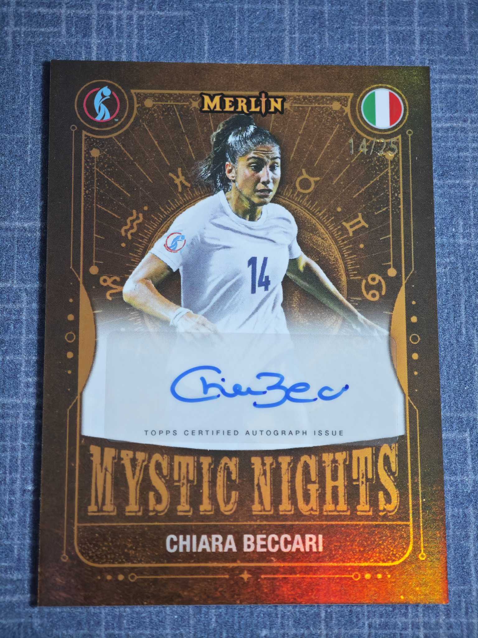 【小灰机】2025 topps merlin梅林 女足 CHIARA BECCARI 基亚拉 贝卡里 意大利 萨索洛 签字 14/25编 橙折 瑕疵如图 4521