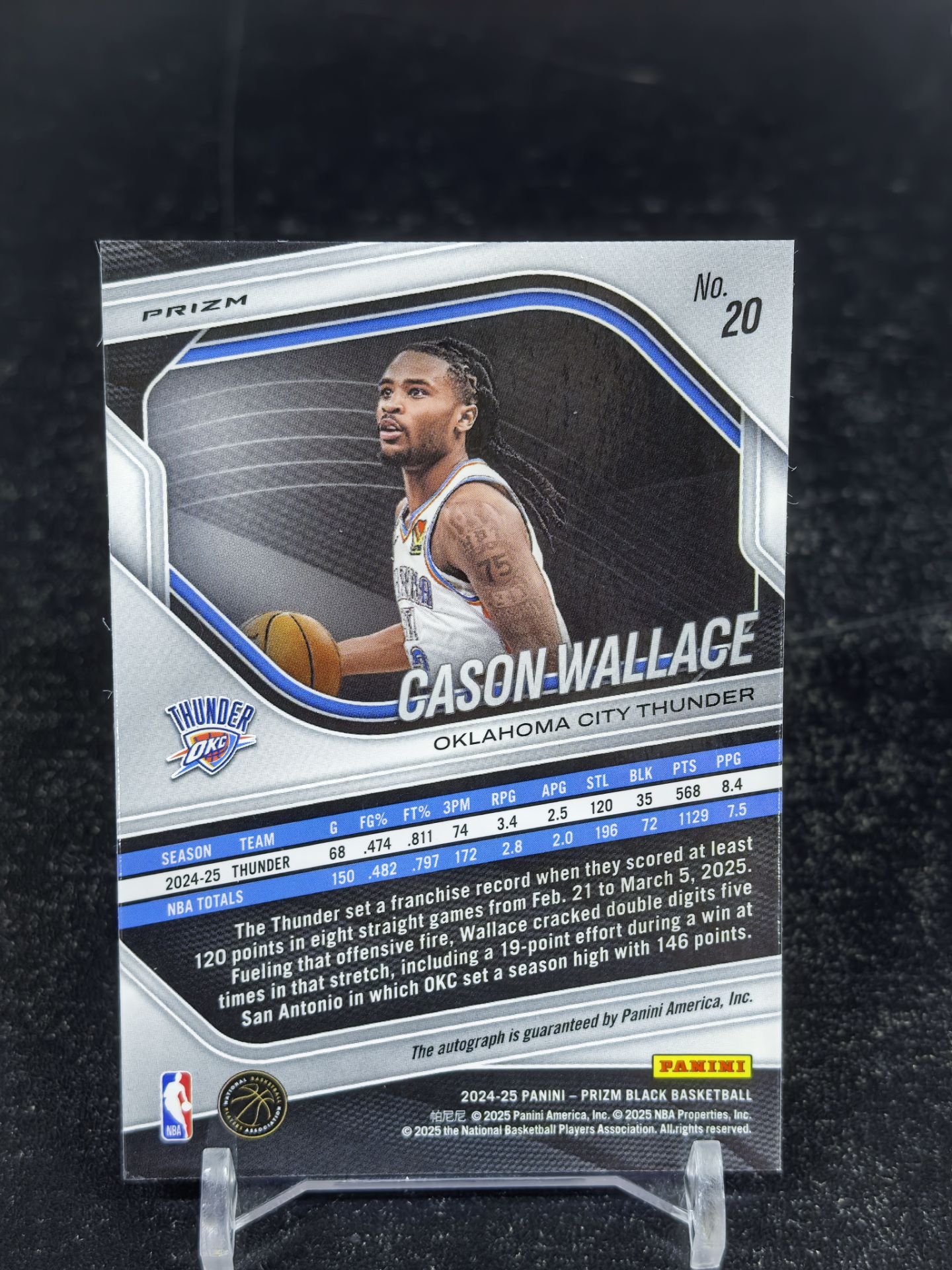 【浩行拍卖 截标预付82%】2024-25 PANINI prizm black cason wallace 雷霆 卡森 凯森 华莱士 银折 折射 签字 专收必备 瑕疵看图「把饼」1201N02紋