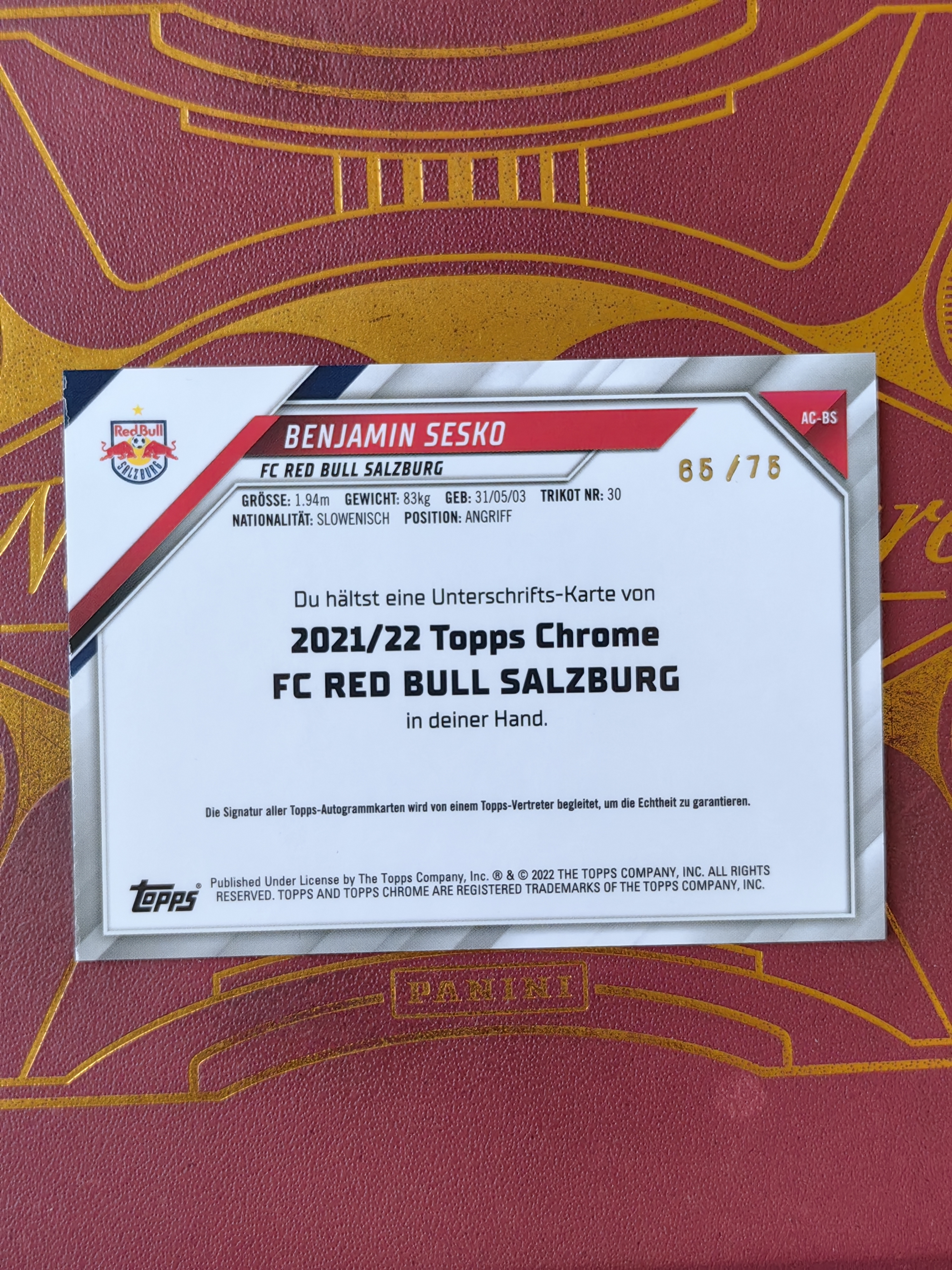 2021-22 Topps Chrome Benjamin Šeško 卡卡星球拍卖 TC 萨尔茨堡红牛队盒 塞斯科 赛思科 谢什科 新秀 RC 签字 卡签 背号签 65/75编 曼联 斯洛文尼亚