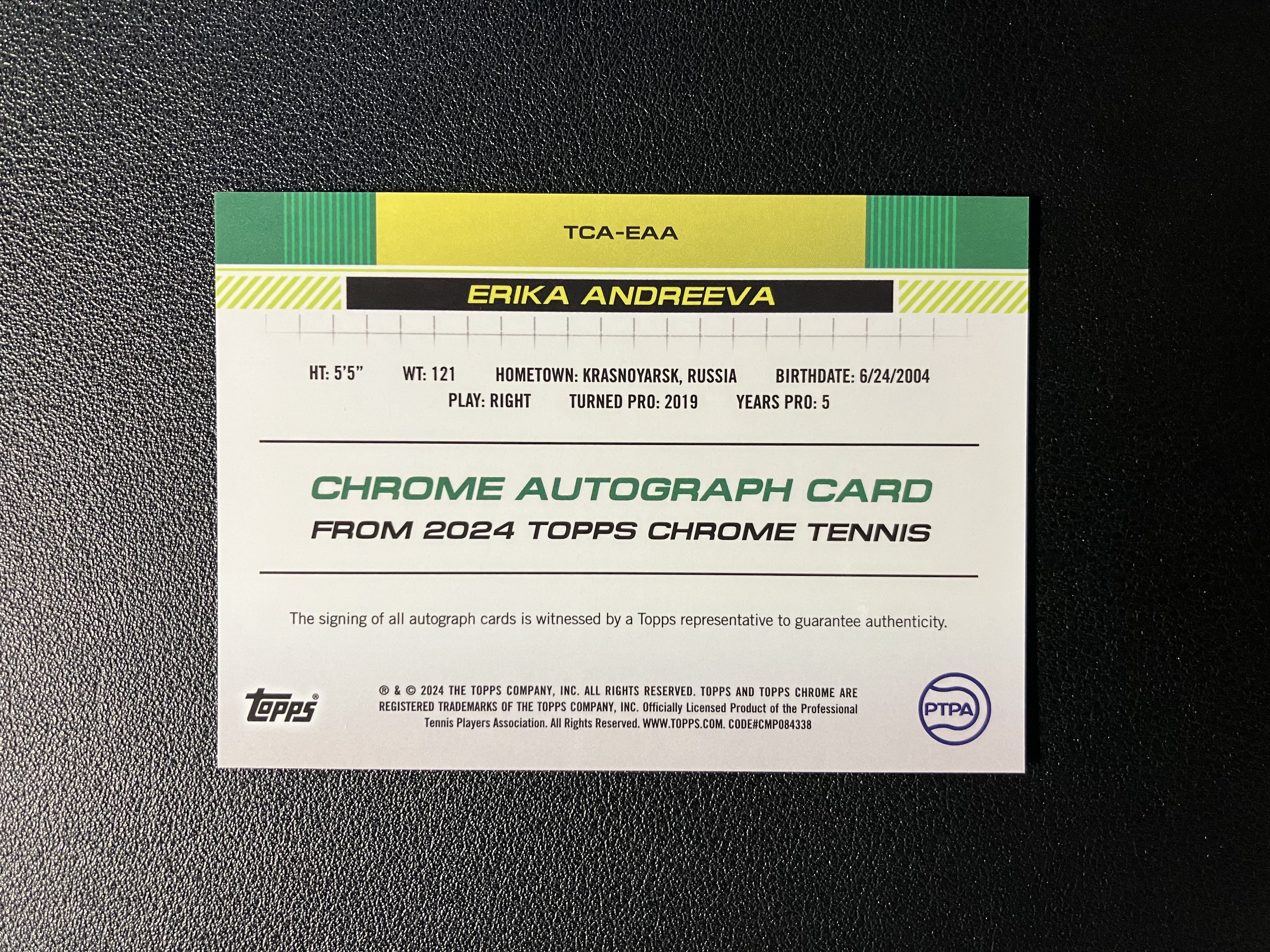 2024 Topps Chrome Tennis Erika Andreeva RC 网球Chrome ‌埃丽卡-安德烈耶娃 单人签 签字 RC新秀 俄罗斯 卡品如图 A115