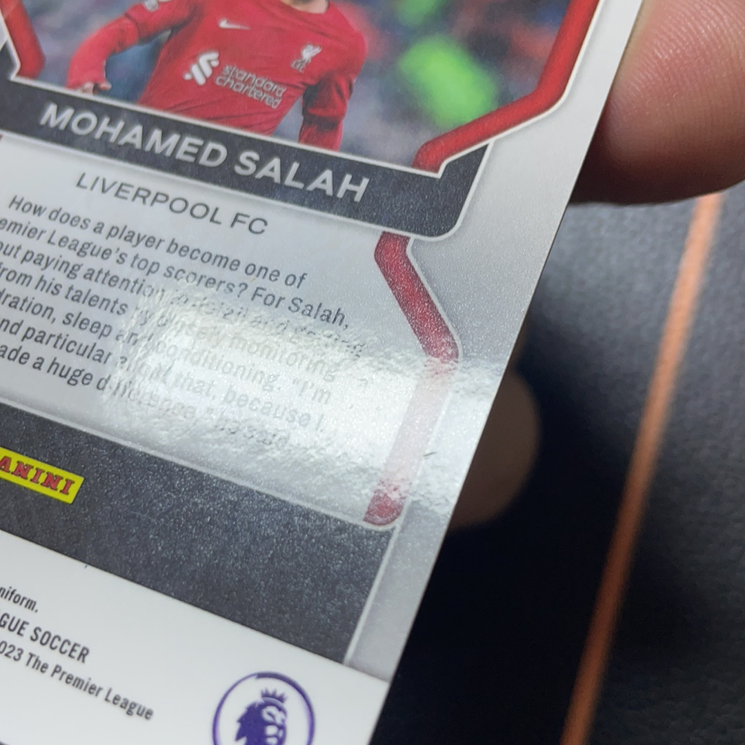 (怪兽拍卖) GSW-C69 2022-23 Panini Prizm Mohamed Salah 利物浦 萨拉赫 埃及法老 英超PZ 99/99编 尾编 炸弹编 红折 球队同色 图3微瑕