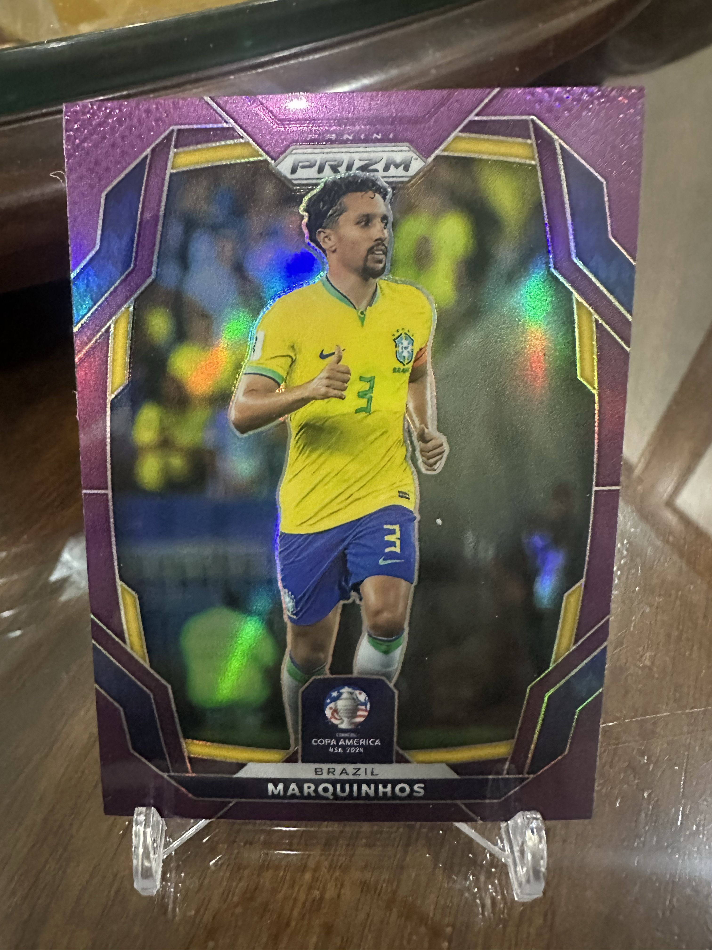2024 Panini Prizm Marquinhos 美洲杯 巴西 马尔基尼奥斯 49编 首编 紫折base 巴黎 罗马 法国🇫🇷 巴西🇧🇷 意大利🇮🇹 亚马尔 极具收藏价值